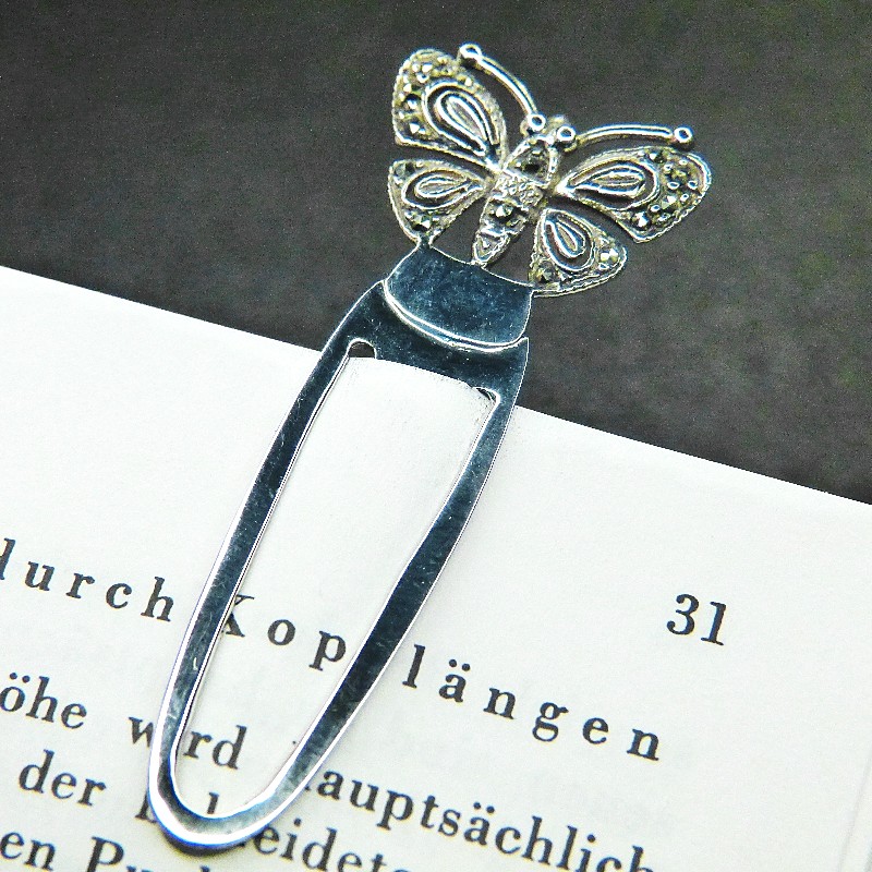 Edles Leszeichen aus Silber 925/- mit Schmetterlingsmotiv und eingearbeiteten echten Markasitsteinchen.
