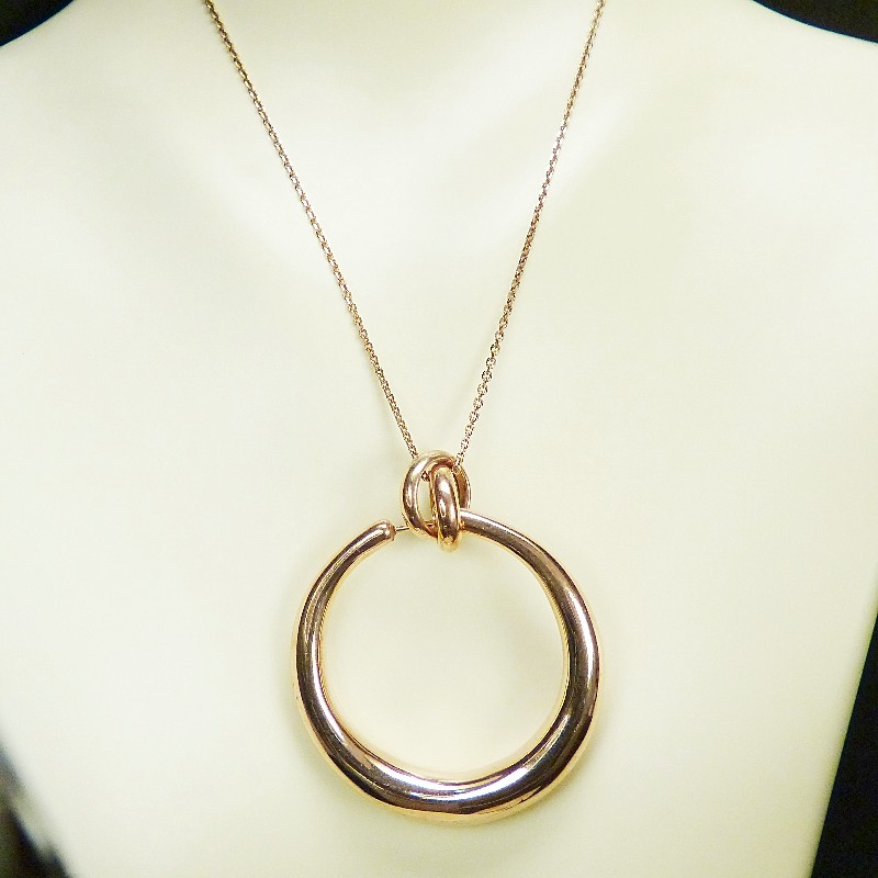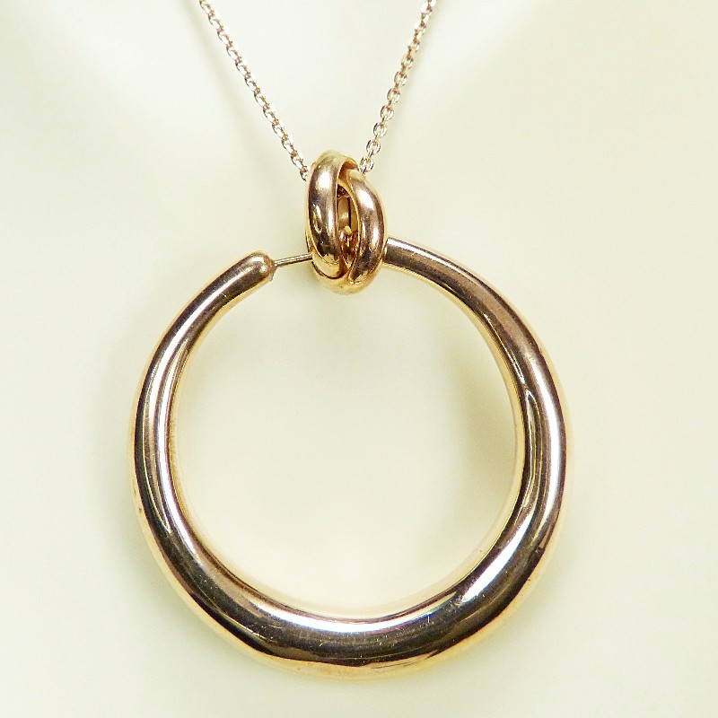 Aus 925/-er Silber gefertigter Creolenanhänger in Rosè-Vergoldung mit einem Durchmesser von ca. 48mm.