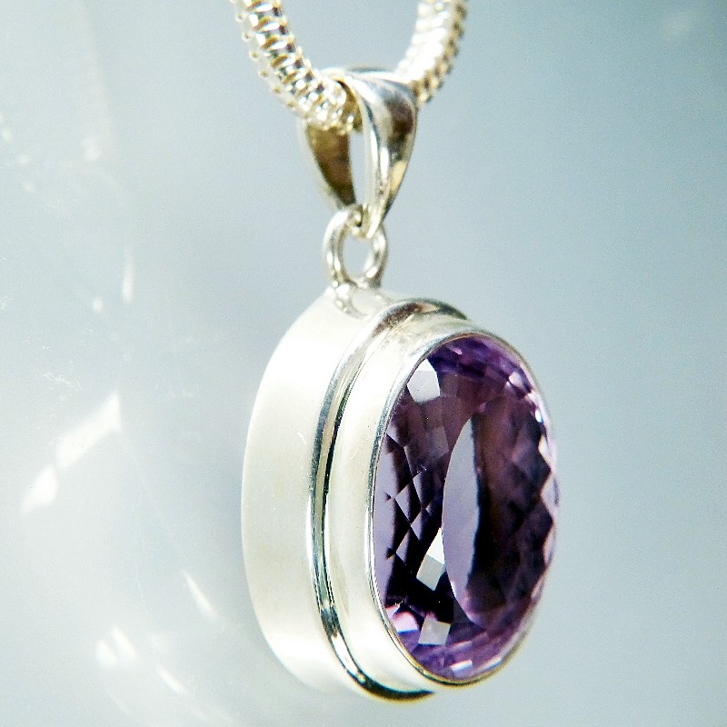 Schöner Anhänger aus Silber 925/- mit einem fein facettiertem Amethyst in einer Größe von ca. 21 x 17 x 14mm.