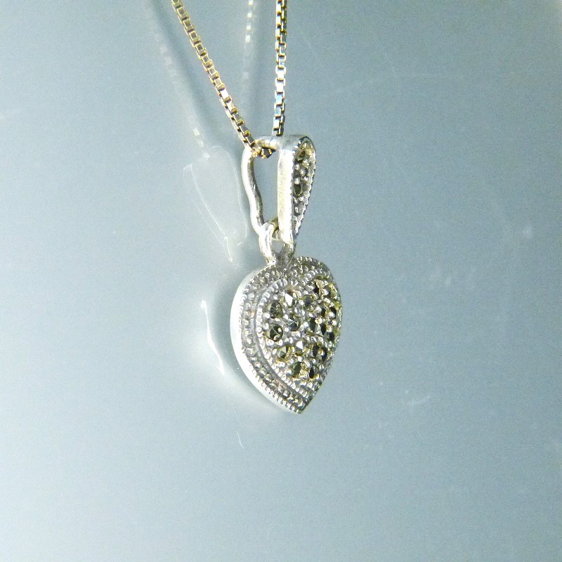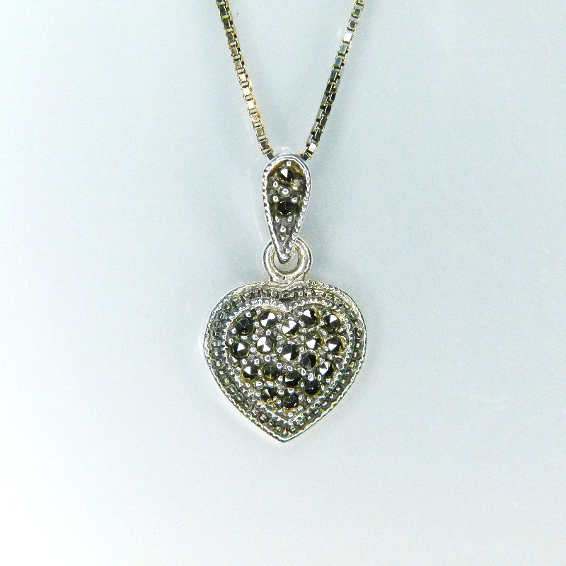 Anhänger aus 925/-er Silber, besetzt mit kleinen facettierten Markasitsteinchen.