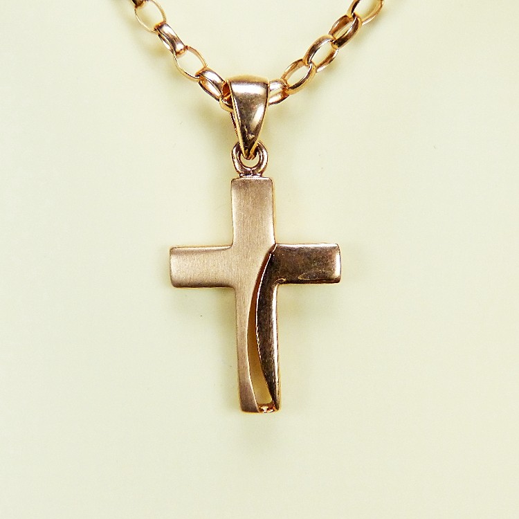 Aus 925/-er Silber gefertigter Kreuzanhänger in Rosè-Vergoldung und Teilmattierung.