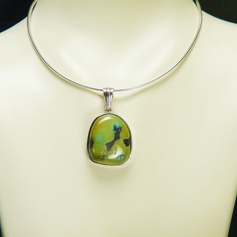 Massiver Anhänger aus 925/-er Silber mit echtem Türkis in toller ausgefallener Grünfärbung.
