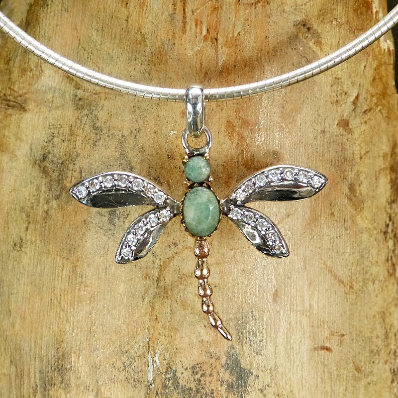 Silberanhänger Libelle mit Chrysopras