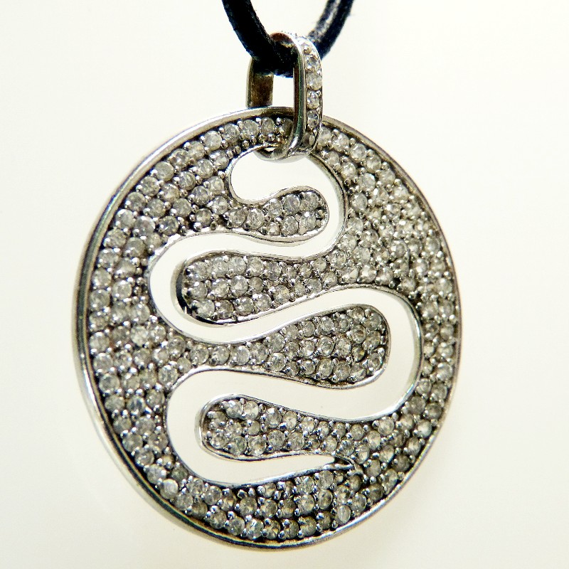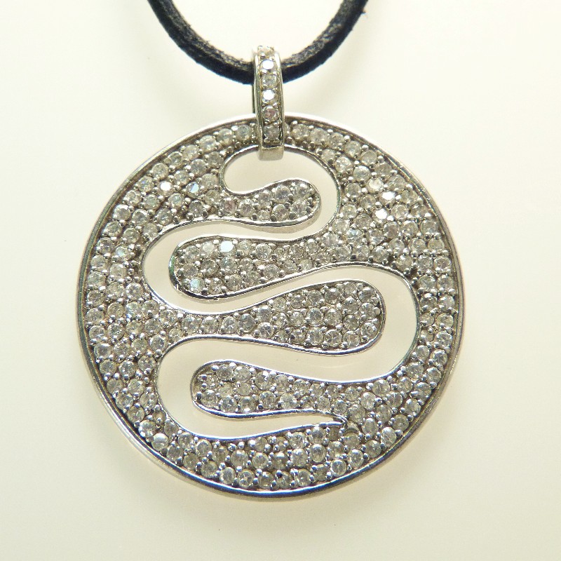 925/-er Silber Anhänger mit rhodinierter Oberfläche und vielen, aufwändig gefassten weißen Zirkonia.