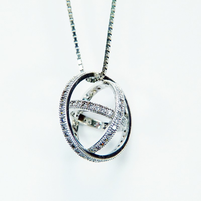 Dieser feine und edle Anhänger sowie die Kette wurden aus 925/-er Silber gefertigt und die Oberflächen zusätzlich rhodiniert.