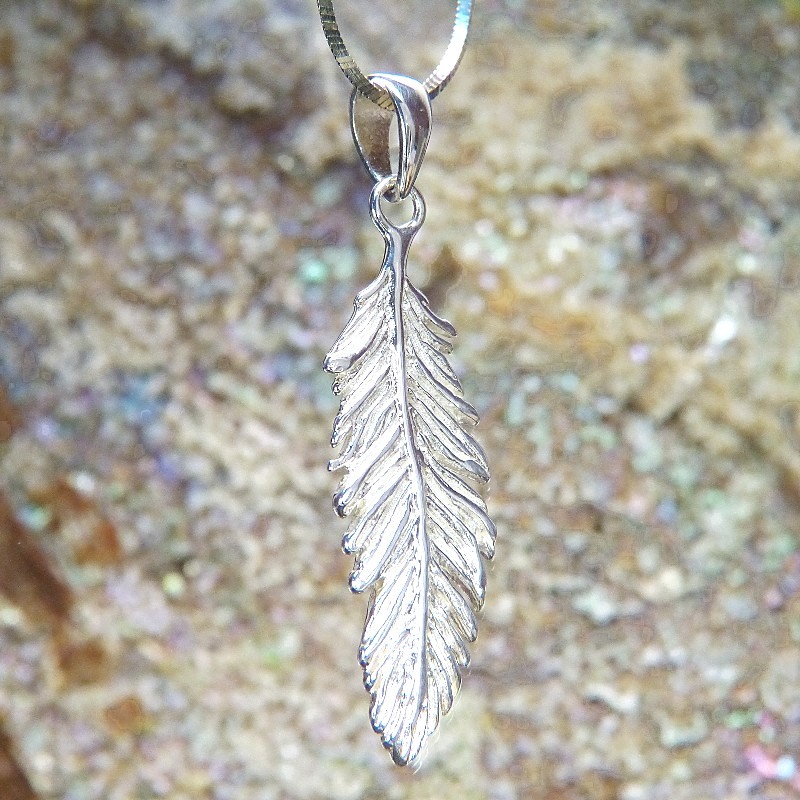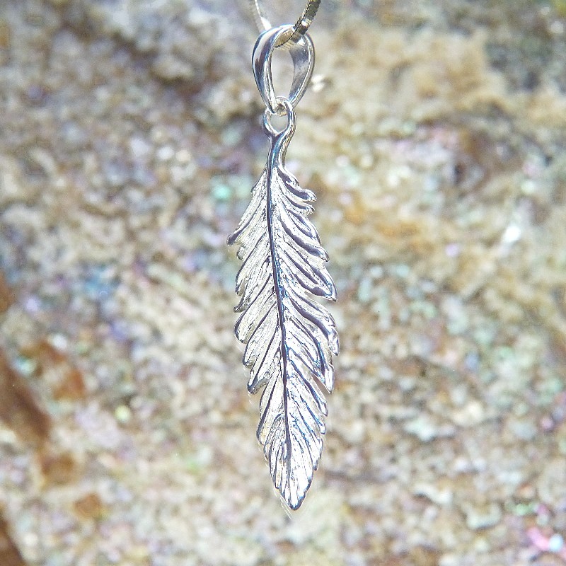 Aus 925/-er Silber gefertigter Anhänger als Feder mit einer Größe von ca. 39 x 13 mm (ohne Öse)