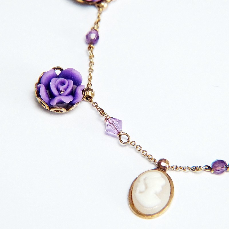 schmales Silberarmband mit Rosenmotiv