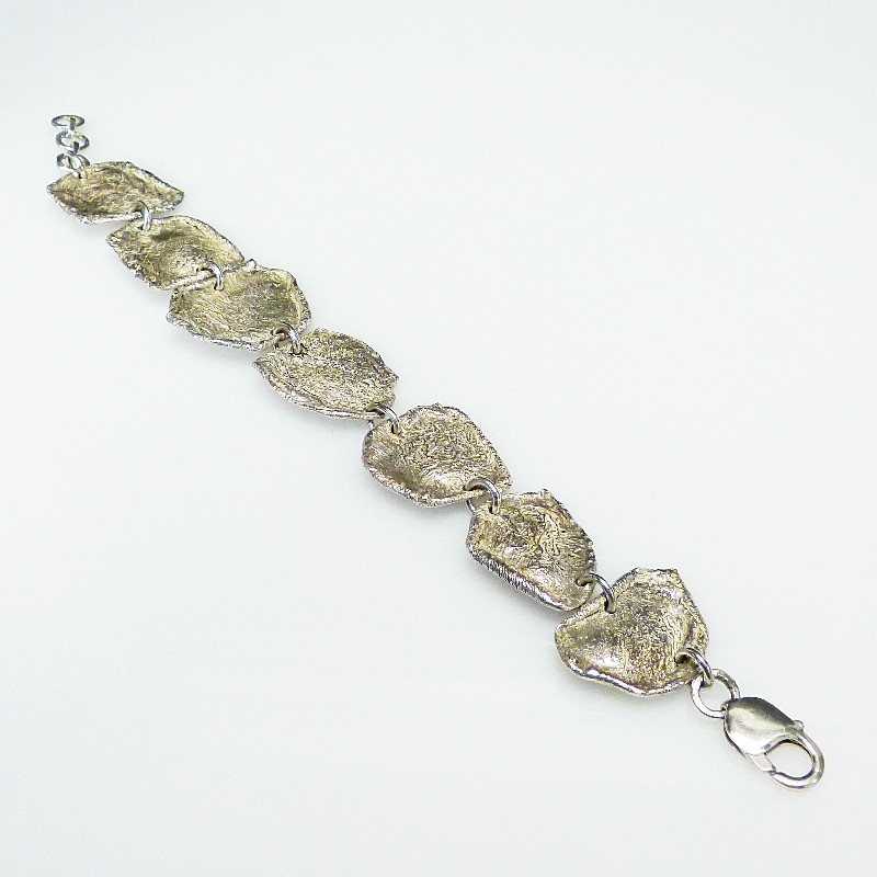Armband aus Silber 925/- mit bis zu ca. 3 cm breiten "Münzen". Die Länge kann von ca. 21 bis 23 cm variiert werden.