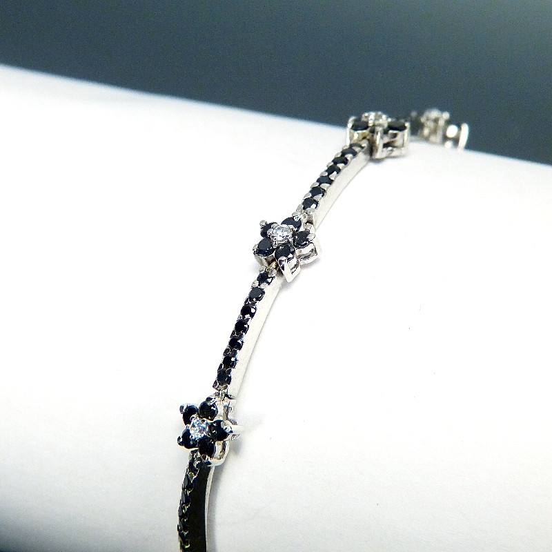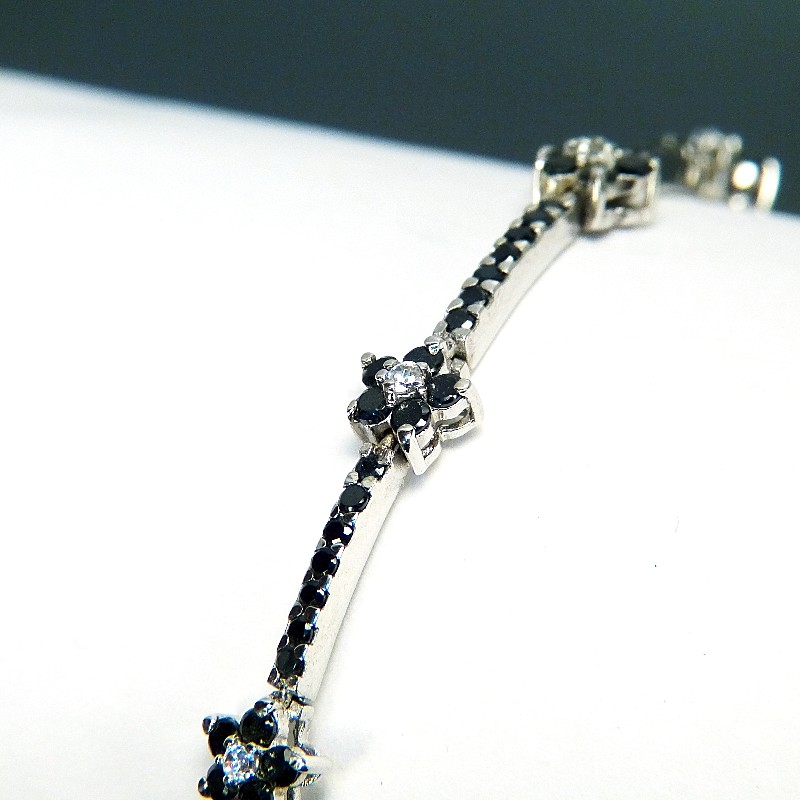 Edles Armband aus rhodiniertem Silber 925/- mit eingefassten schwarzen und weißen Zirkonia.