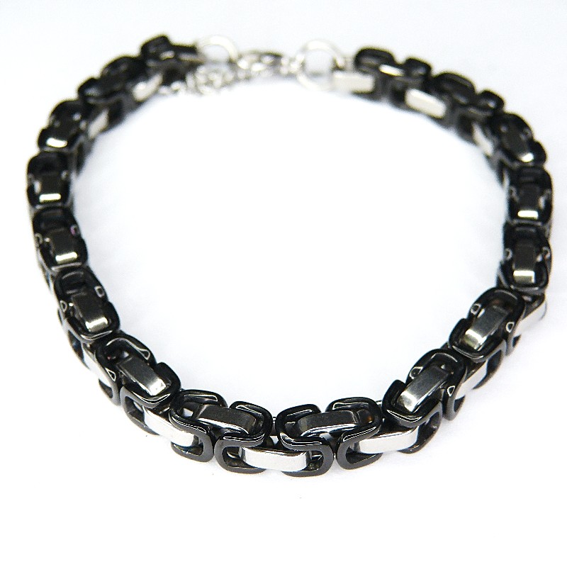 Massives Königsarmband aus hochglanz poliertem und teilweise geschwärztem Edelstahl mit einer Stärke von ca. 6,5 x 6,5mm.