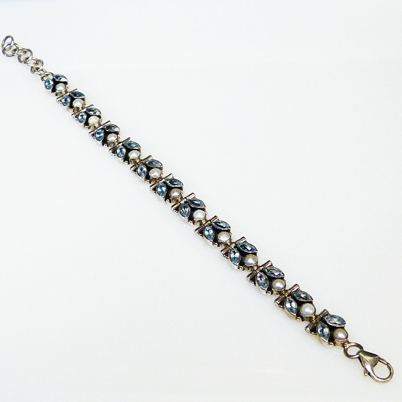 Armband aus Silber 925/- mit gefassten Blautopasen und Zuchtperlen.