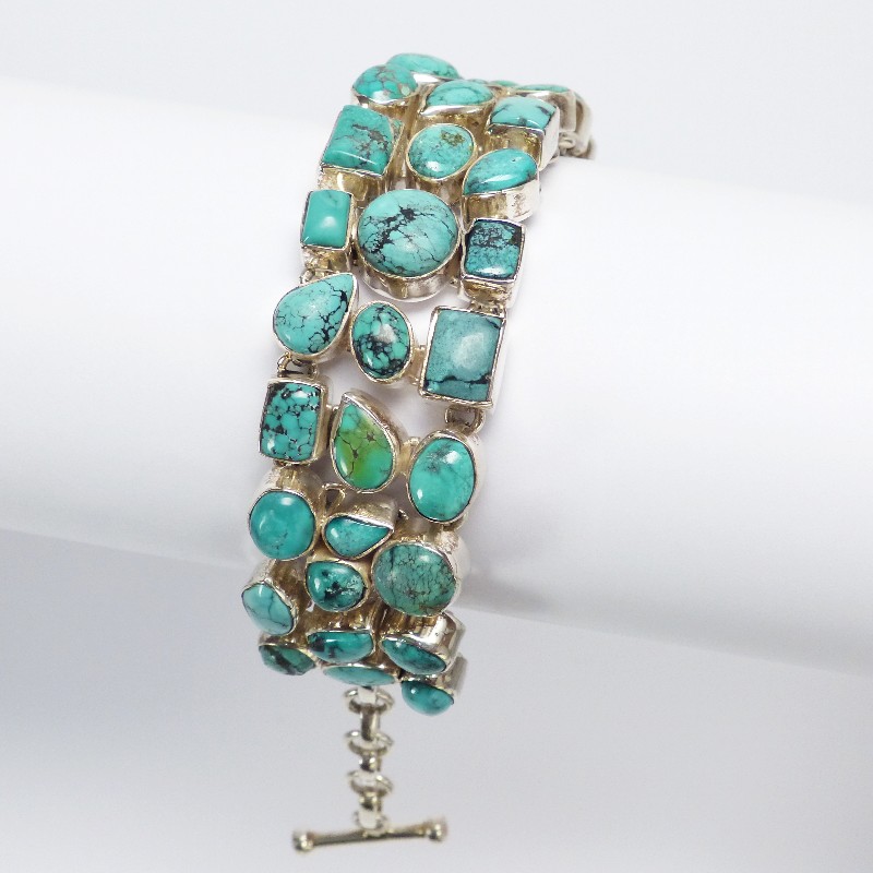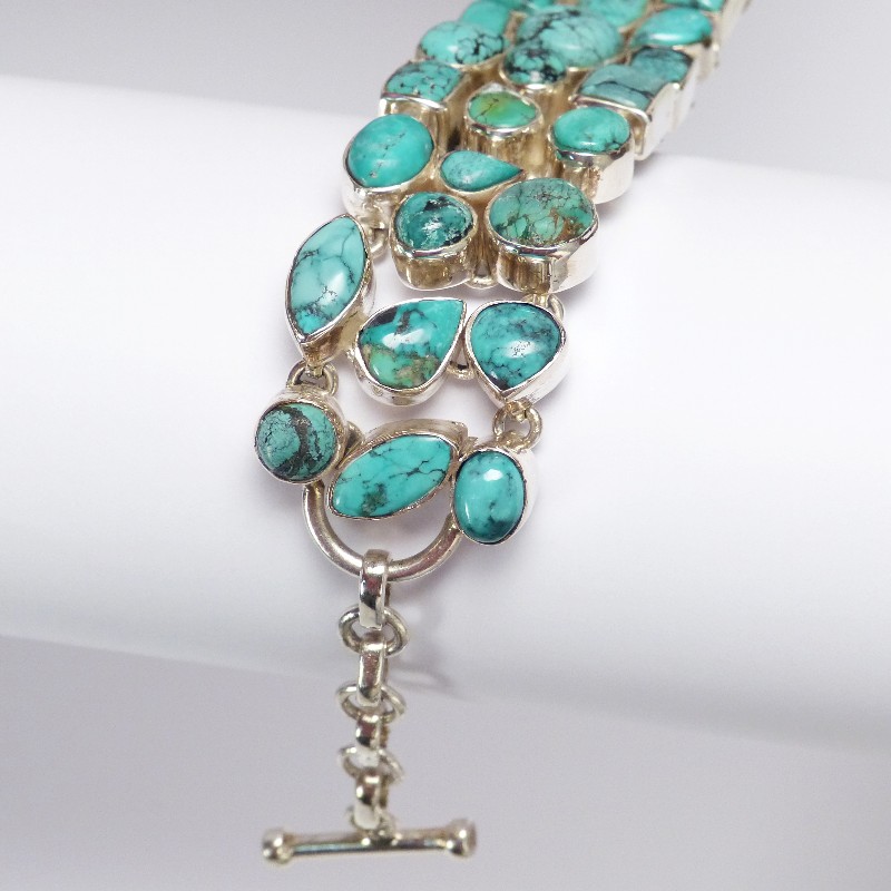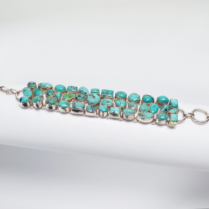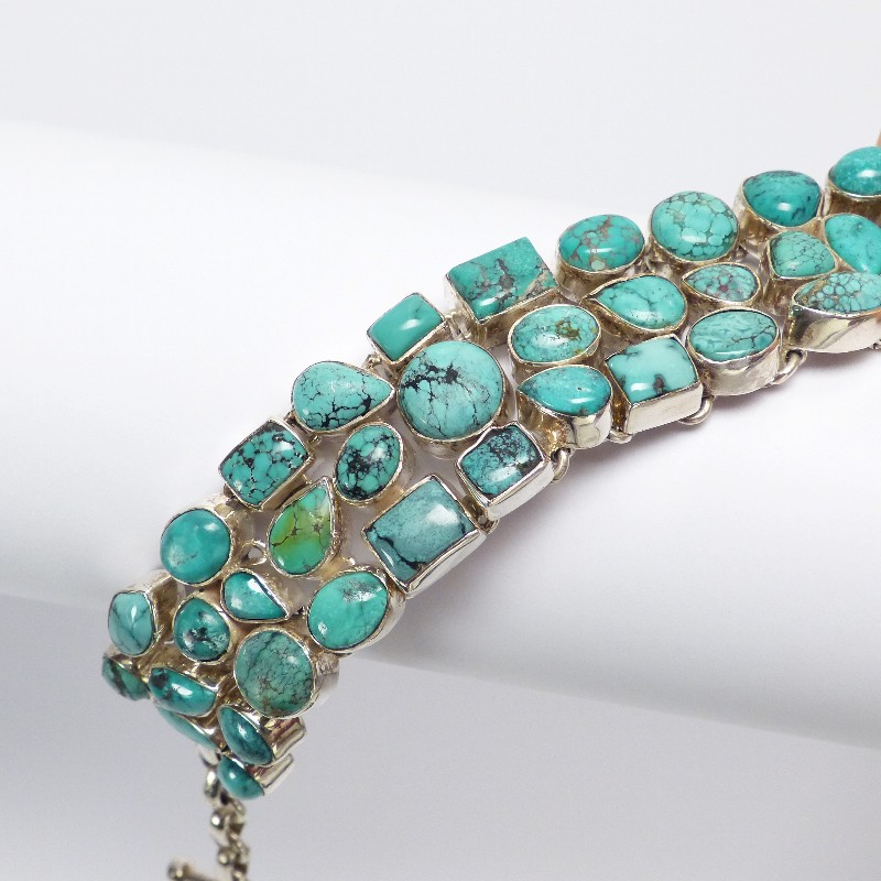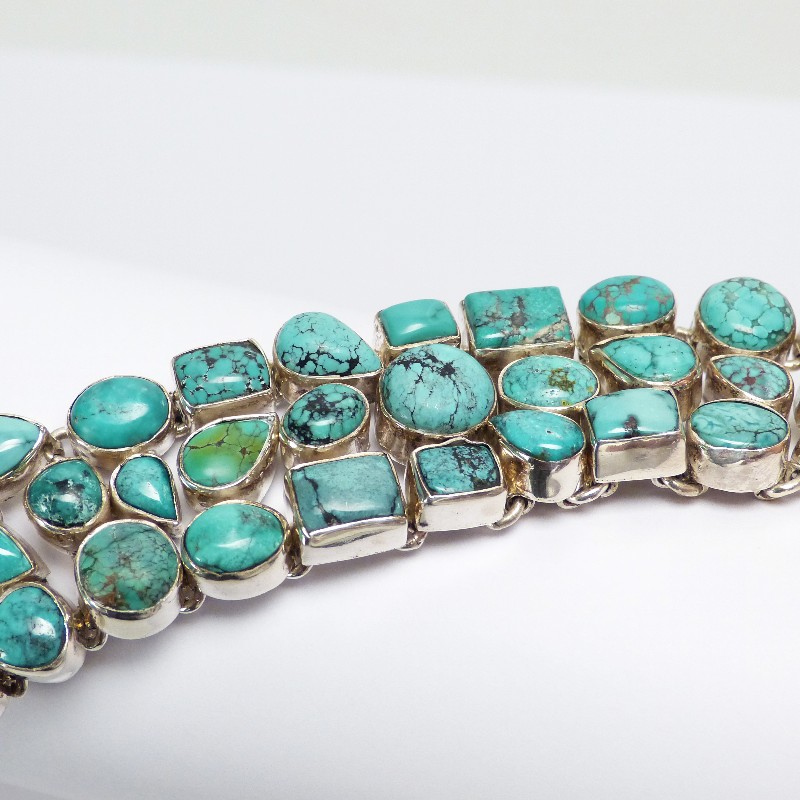 Armband aus 925/- Silber, gefasst mit grünlich/blauen Türkisen.