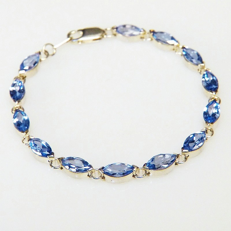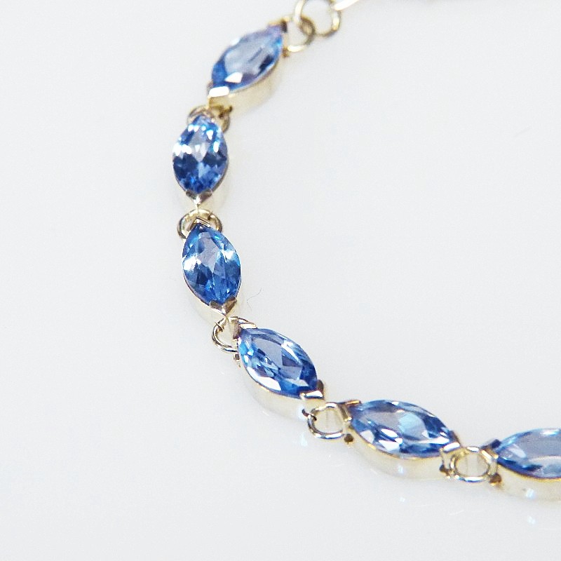 Armband aus 925/-er Silber mit navetteförmigen Zirkonia in der Farbe Aquamarin.