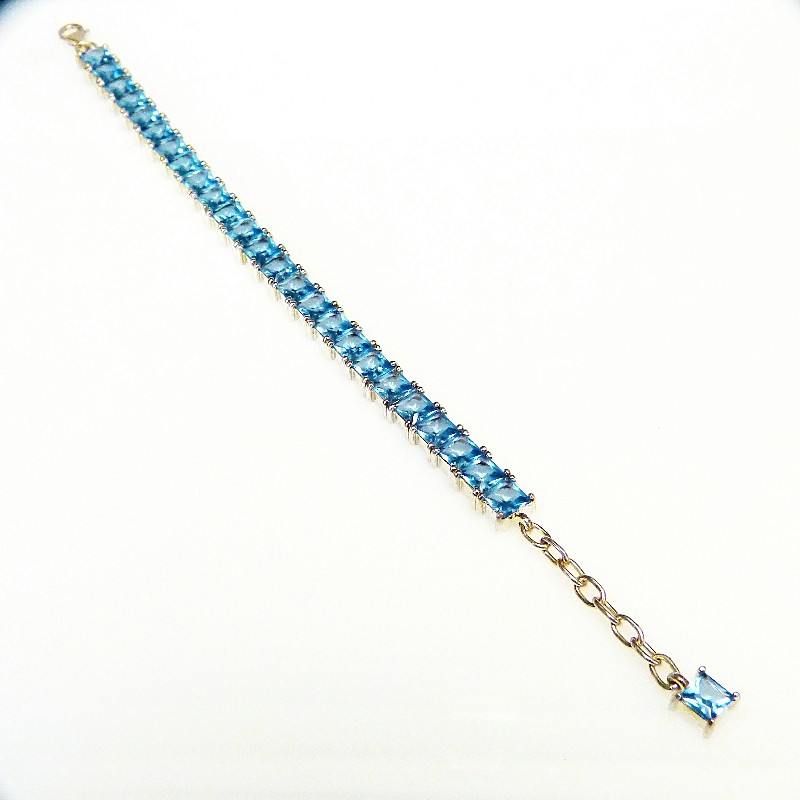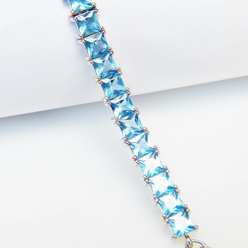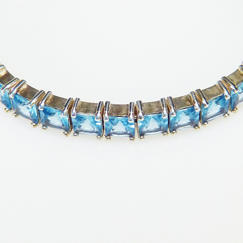 Armband aus Silber 925/- mit Aquamarin farbenenen Zirkonia. Das BAnd hat eine Breite von ca. 8,5mm und die Länge kann zwischen ca. 17,5 und 21 cm variiert werden.