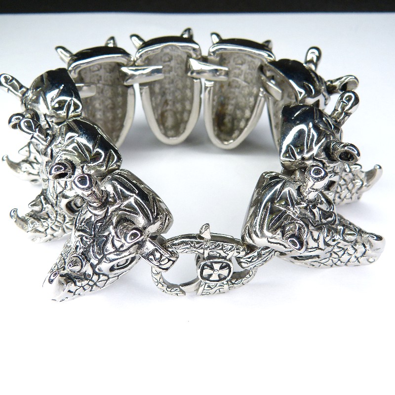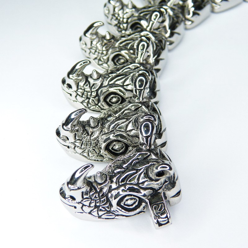Extra schweres Armband aus massivem Edelstahl mit Rhino-Köpfen und einer Gesaamtlänge von ca. 23,5cm.