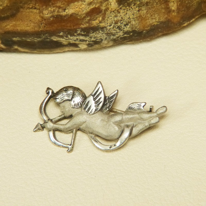 Kleine Brosche aus 925/-er Silber, Motiv "Amor", teilweise diamantiert. Länge ca. 34mm, rückseitig mit Sicherheitsverschluss