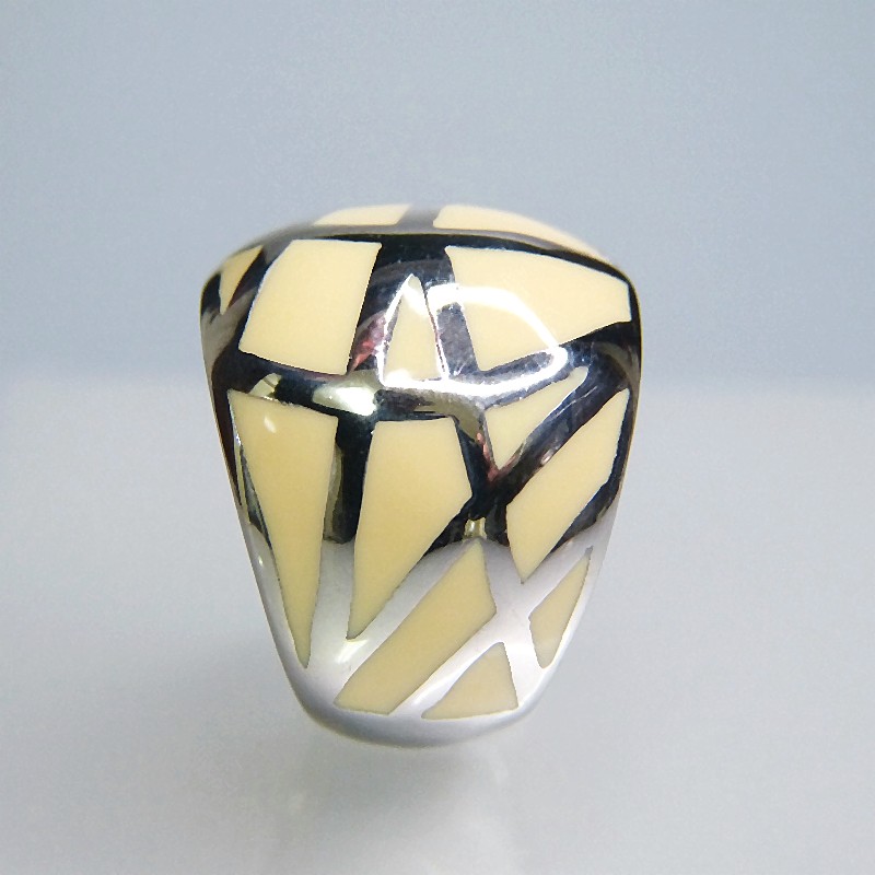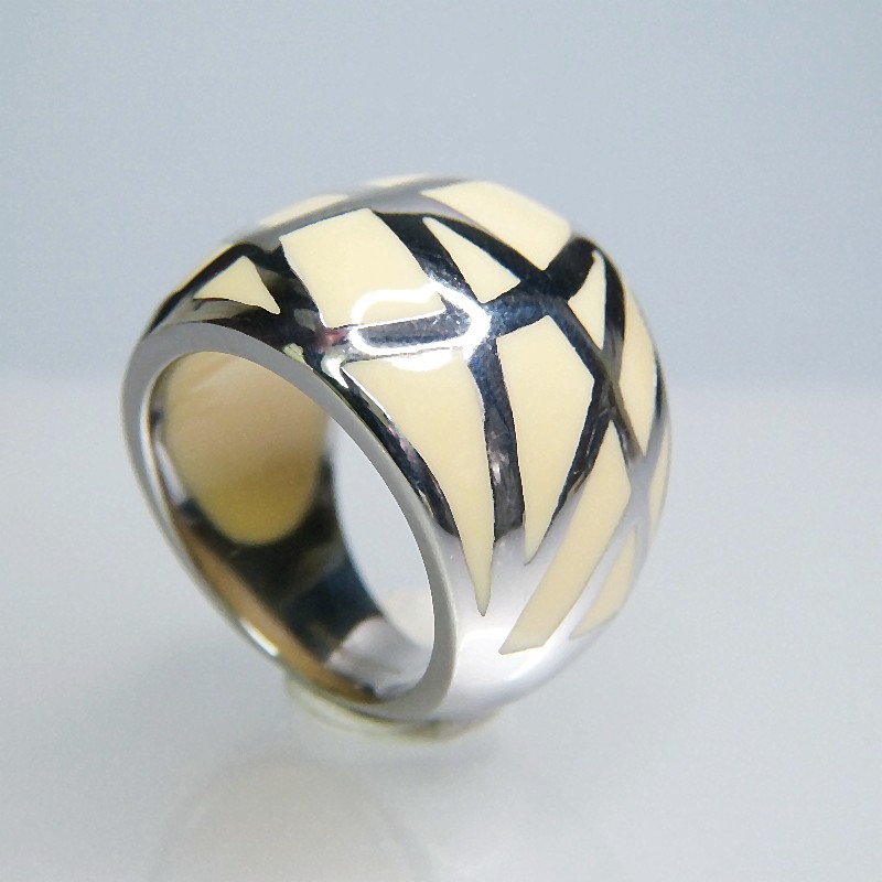 Edelstahlring mit Mosaikeinlage aus cremefarbener Kaltemaille