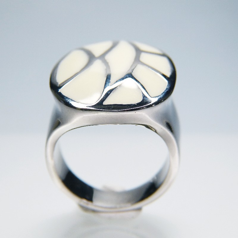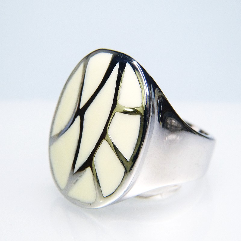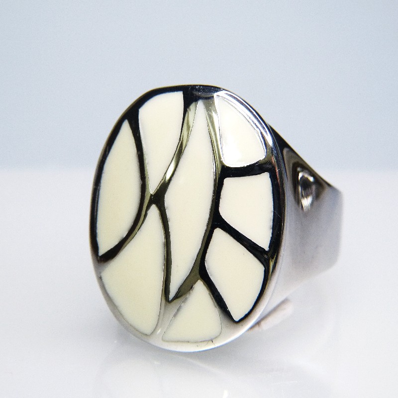Edelstahlring mit Mosaikeinlage aus heller Kaltemaille
