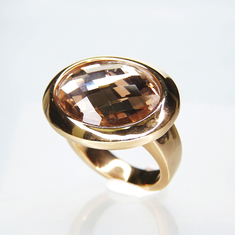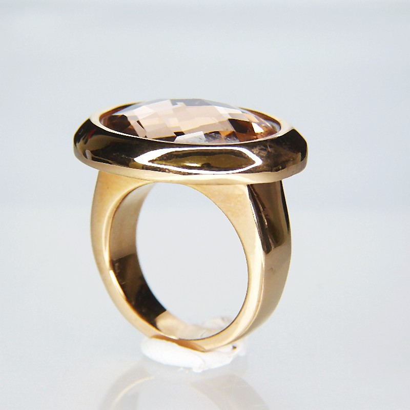 Edler Ring aus Edelstahl mit hochwertiger IP-Rosévergoldung und facettiertem Swarovskistein in der Farbe champagne.