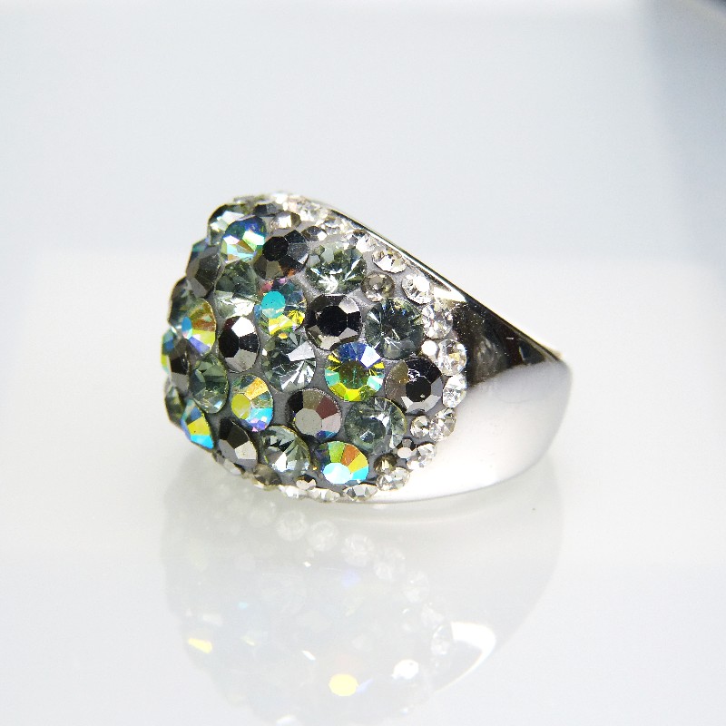 Massiver und auffälliger Edelstahlring mit Swarovskisteinen