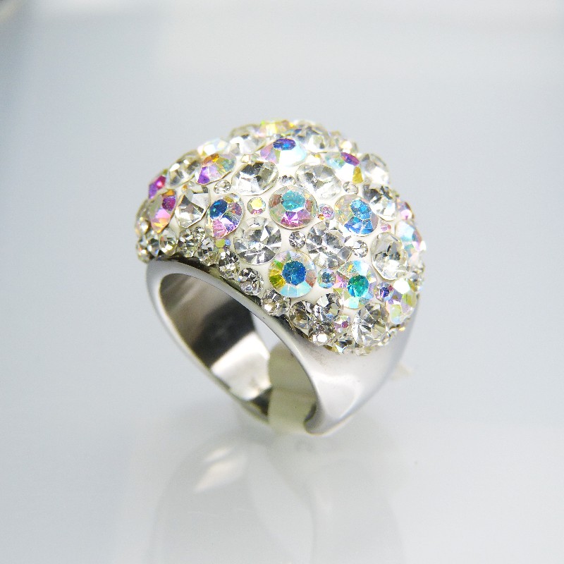 Edelstahlring mit Swarovskisteinen "weiß" W 17,2