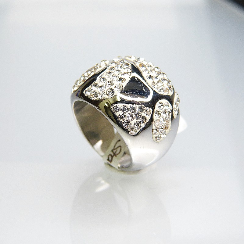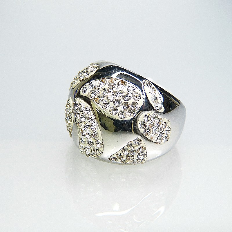 Massiver Edelstahlring mit weißen Swarovskisteinen, Gesamtdurchmesser ca. 20mm