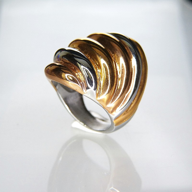 Auffälliger Ring, Edelstahl, Gelbgold, Rotgold