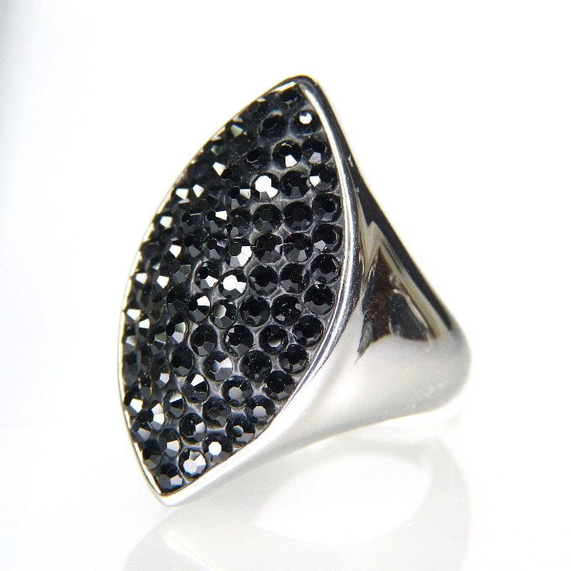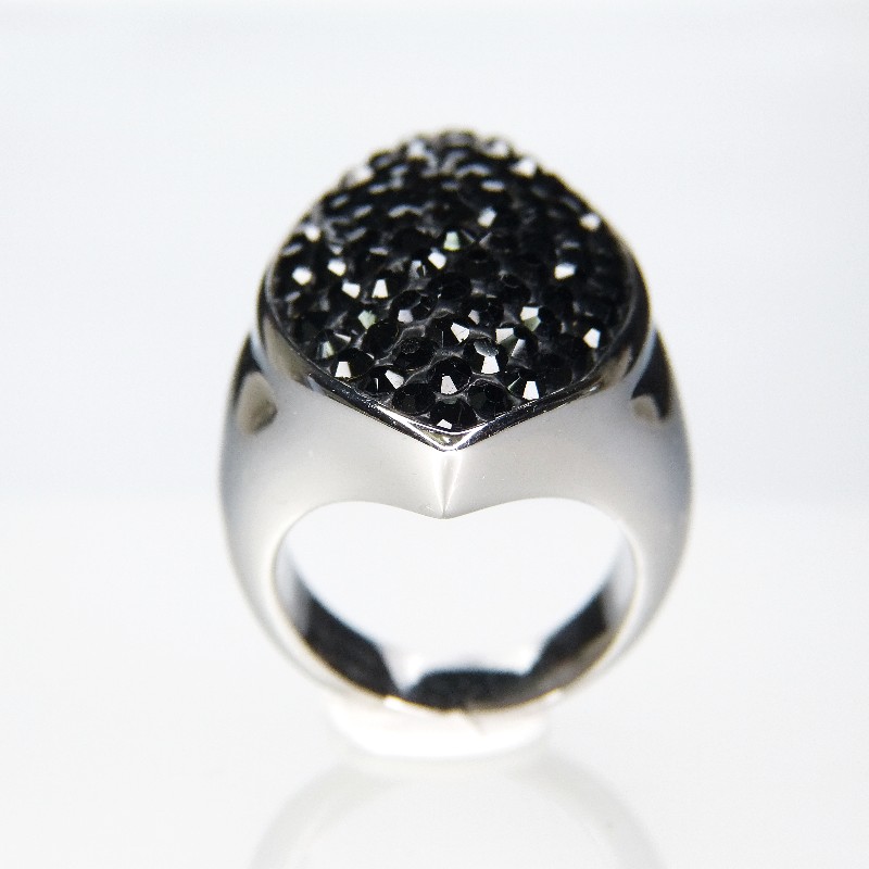 Massiver und auffälliger Edelstahlring mit schwarzen Swarovskisteinen.