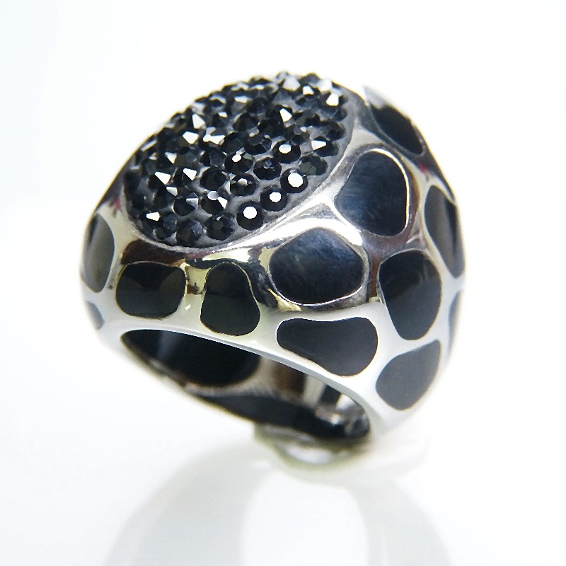 Massiver und auffälliger Edelstahlring mit schwarzen Swarovskisteinen.