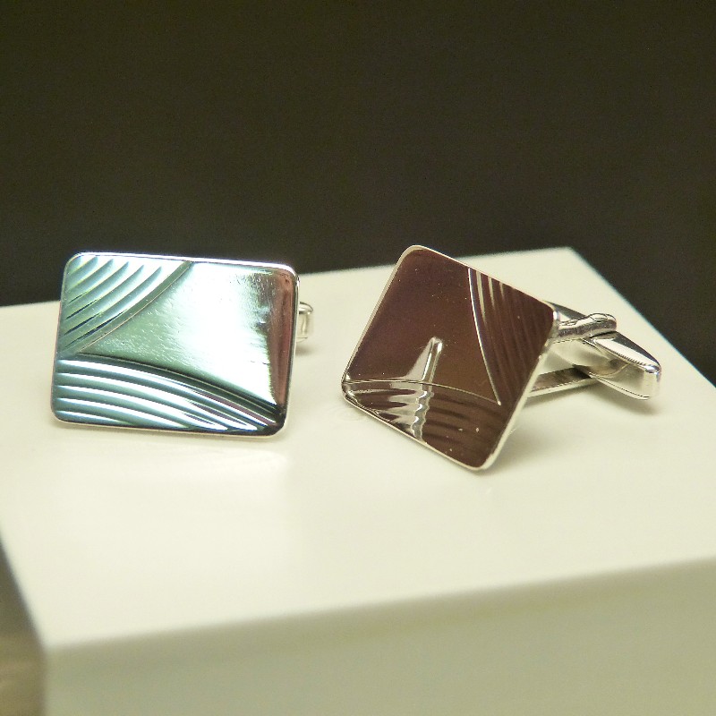 Rechteckige Manschettenknöpfe mit einer Größe von ca. 18,5 x 13,5 mm. Sehr schönes flaches Modell mit gut einrastender Mechanik.