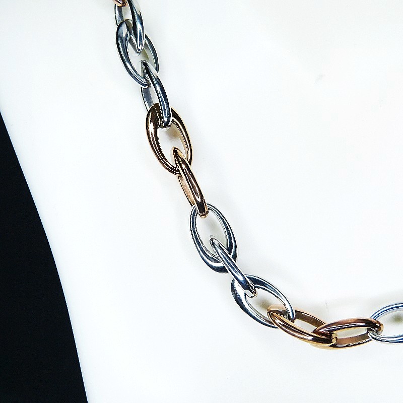 Bicolor Collier/Kette aus hochglanz poliertem Edelstahl mit hochwertiger roséfarbener IP-Vergoldung.