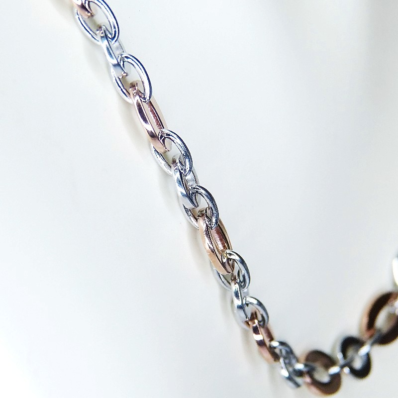 Bicolor Collier/Kette aus hochglanz poliertem Edelstahl mit hochwertiger roséfarbener IP-Vergoldung.
