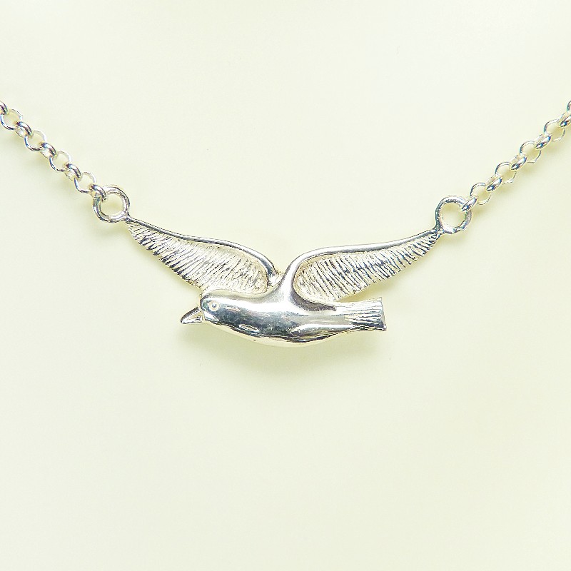 Zartes Collier aus Silber 925/- mit Möwenanhänger mit einer Größe von ca. 3 cm.
