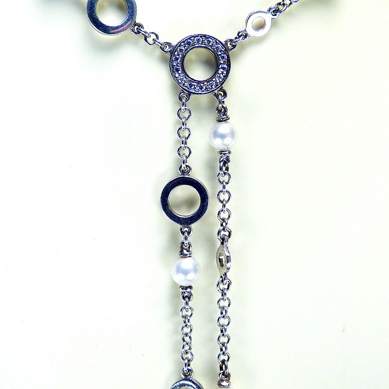Edles und modernes Collier aus rhodiniertem 925/-er Silber mit weißen gefassten Zirkonia.