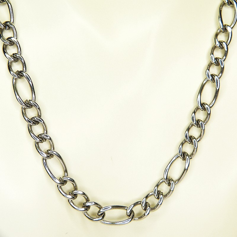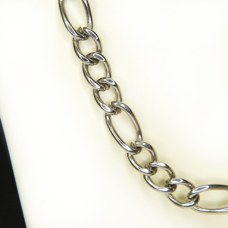 Massive Figarokette aus hochglanz poliertem Edelstahl und gerundeten Gliedern und einer Breite von ca. 9,5mm.