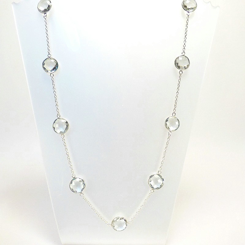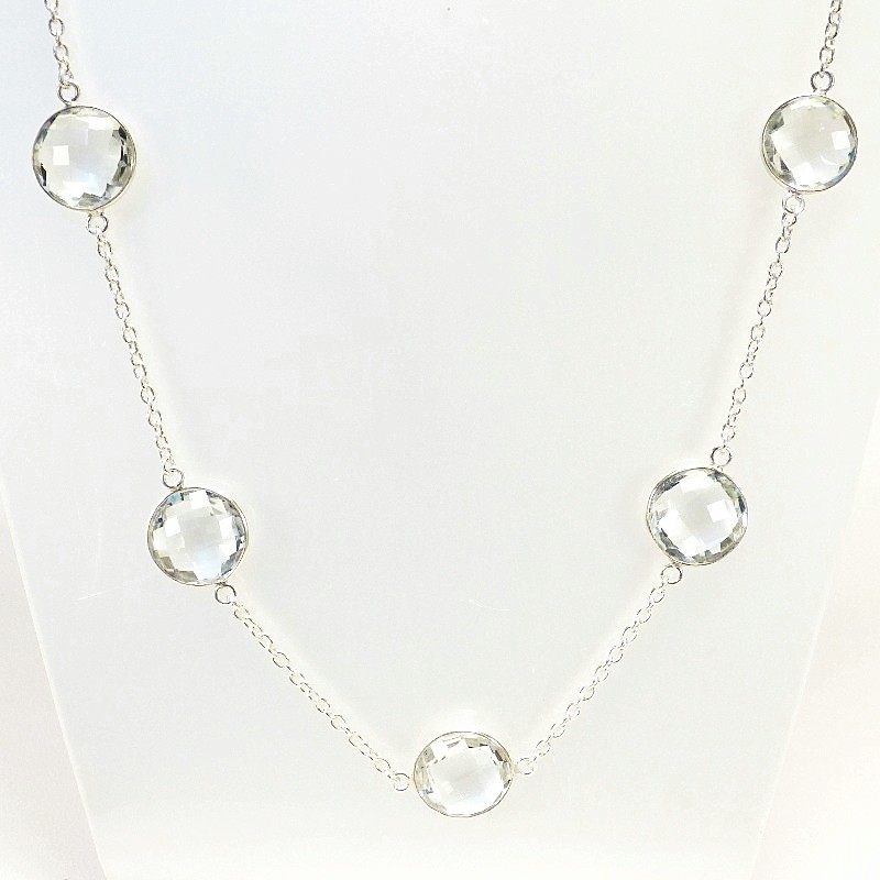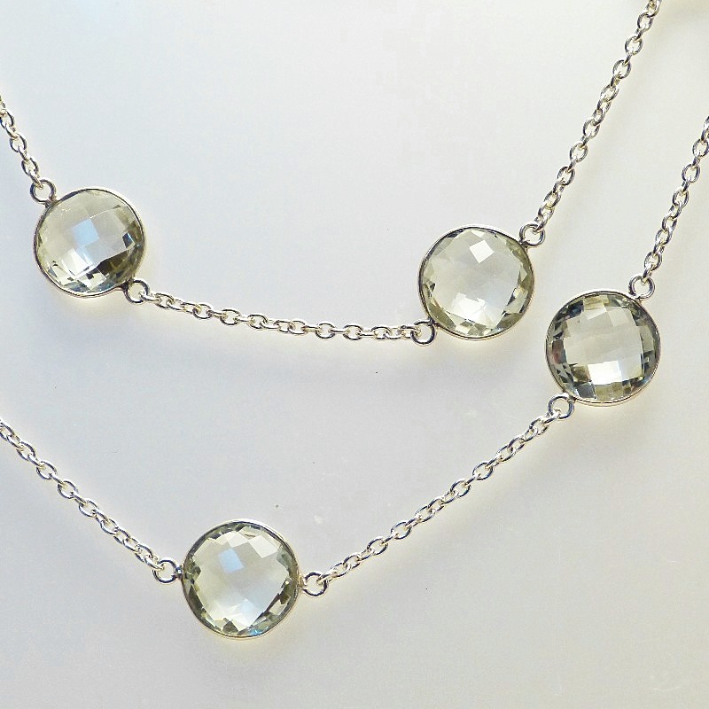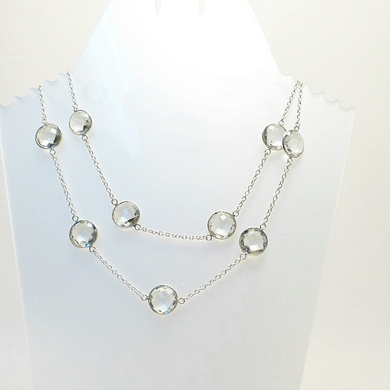 Ca. 80 cm lange Kette aus 925/-er Silber mit eingefassten und facettierten grauen Amethyststeinen.