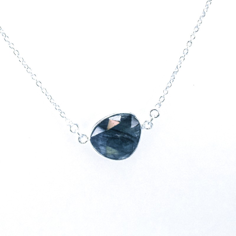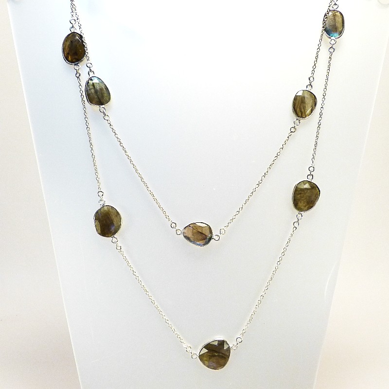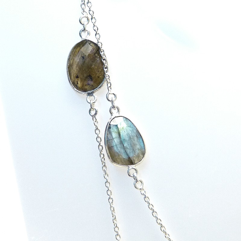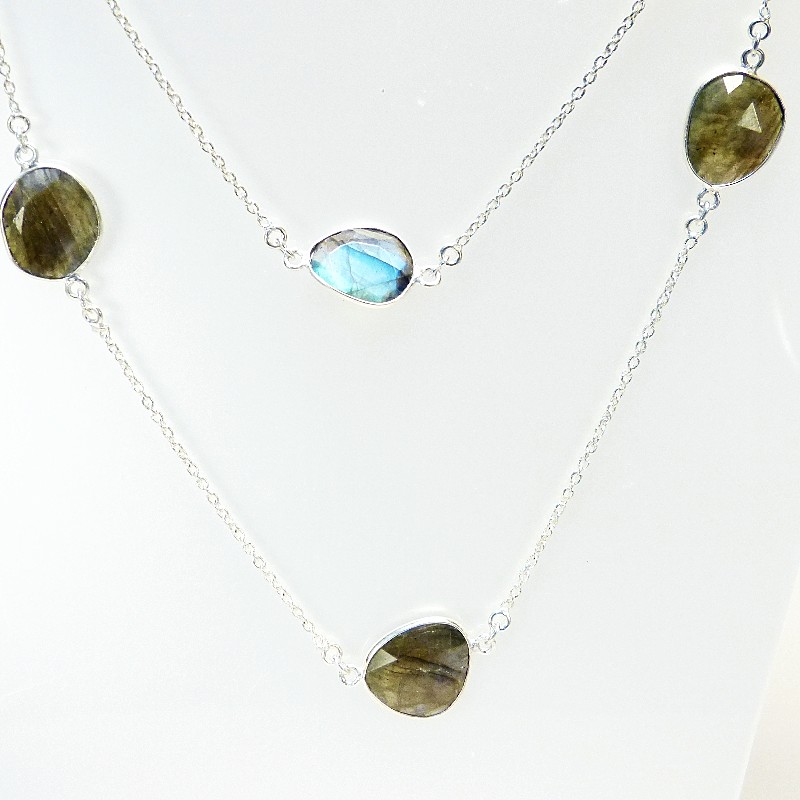 Kette aus 925/-er Silber mit eingefassten und facettierten Labradoritsteinen die je nach Lichteinfall unterschiedlich leuchten.