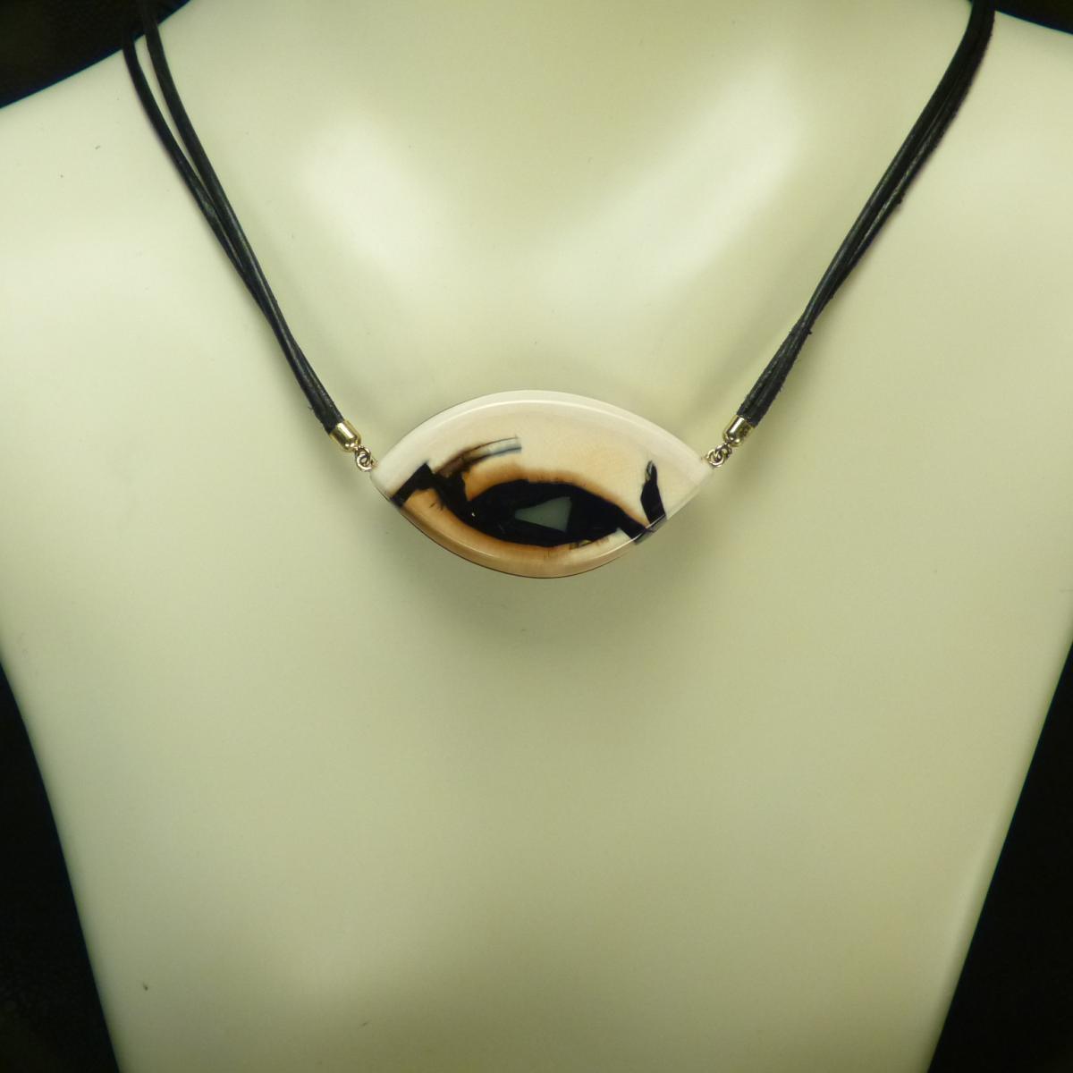 Mit dem Band aus schwarzem Ziegenleder hat das Collier eine Gesamtlänge von ca. 45 cm.