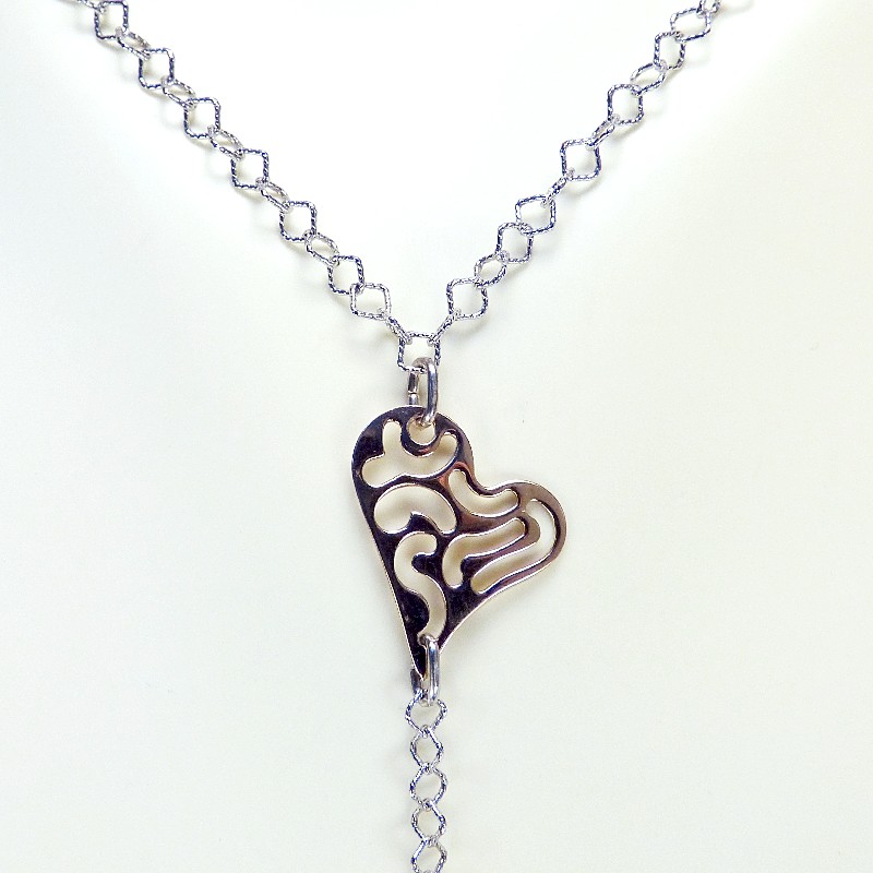Filigrane Kette aus rhodiniertem Silber 925/- mit Herzanhänger, teilweise vergoldet.