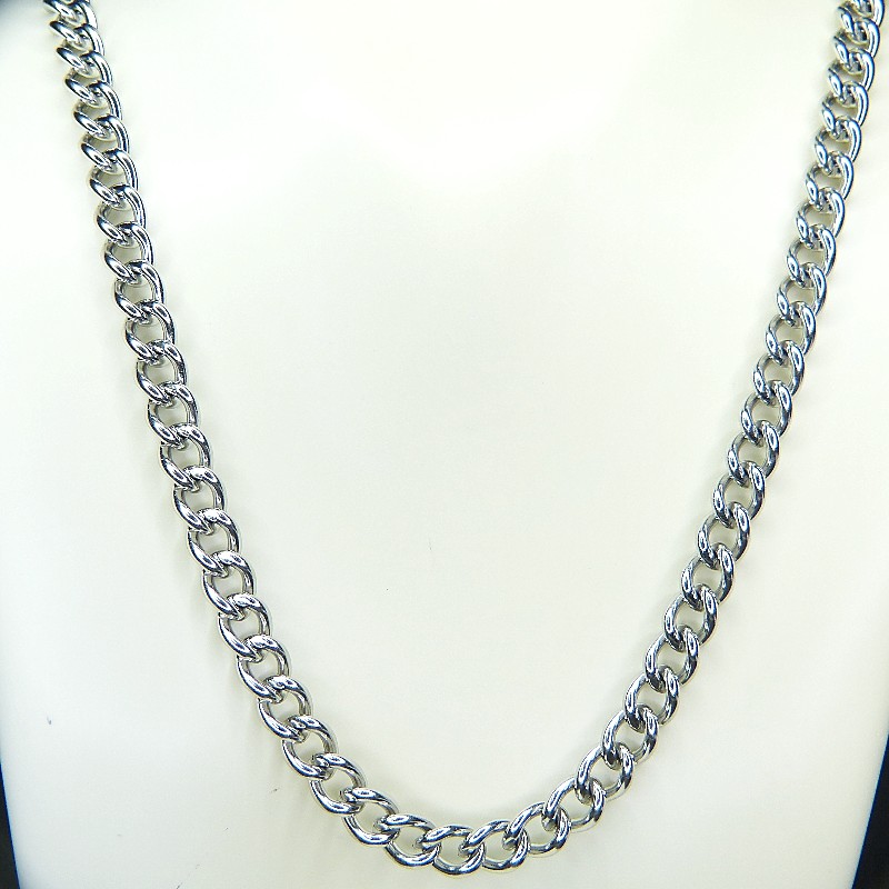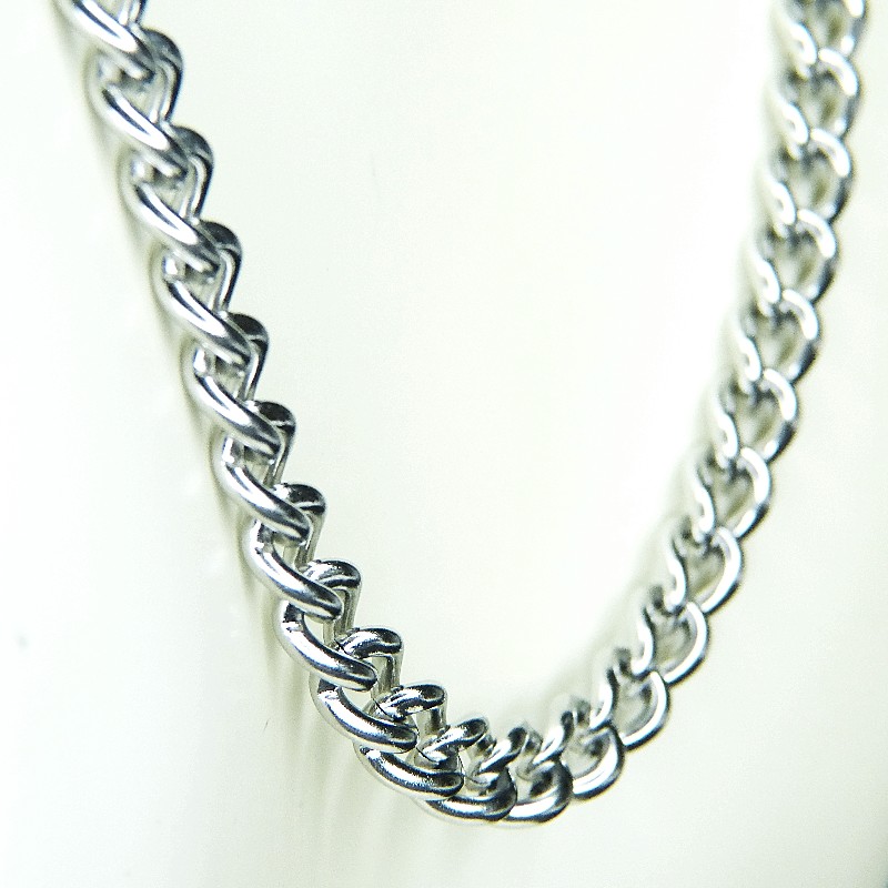 Rundpanzerkette aus poliertem Edelstahl mit einer Gesamtlänge von ca. 70 cm bei einer Gliederbreite von ca. 8,5 mm.