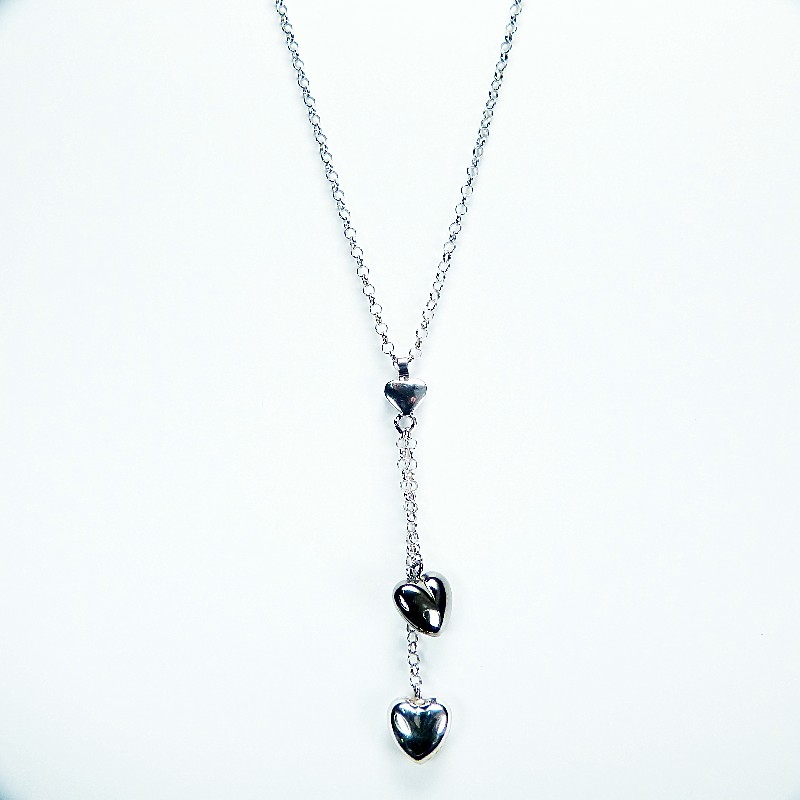 Collier aus Silber 925/- mit 2 Herzanhänger in hellem und dunklem Silber.