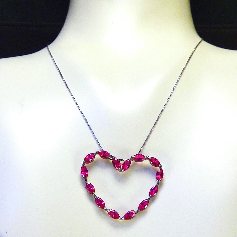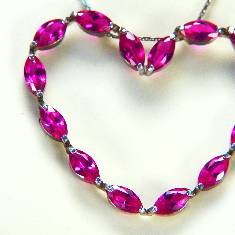 Herzanhänger aus Silber 925/- mit magentafarbenen Zirkonia. Die Größe des Anhängers misst ca. 46 x 37mm