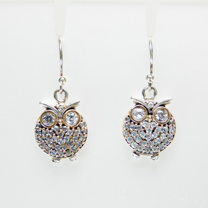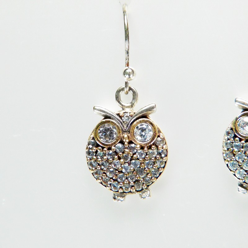 Ohrhänger aus Silber 925/- mit Teilvergoldungen Motiv "Eule", besetzt mit vielen kleinen Weißtopasen.
