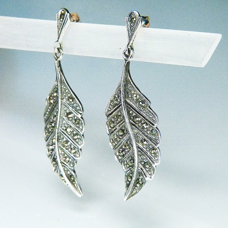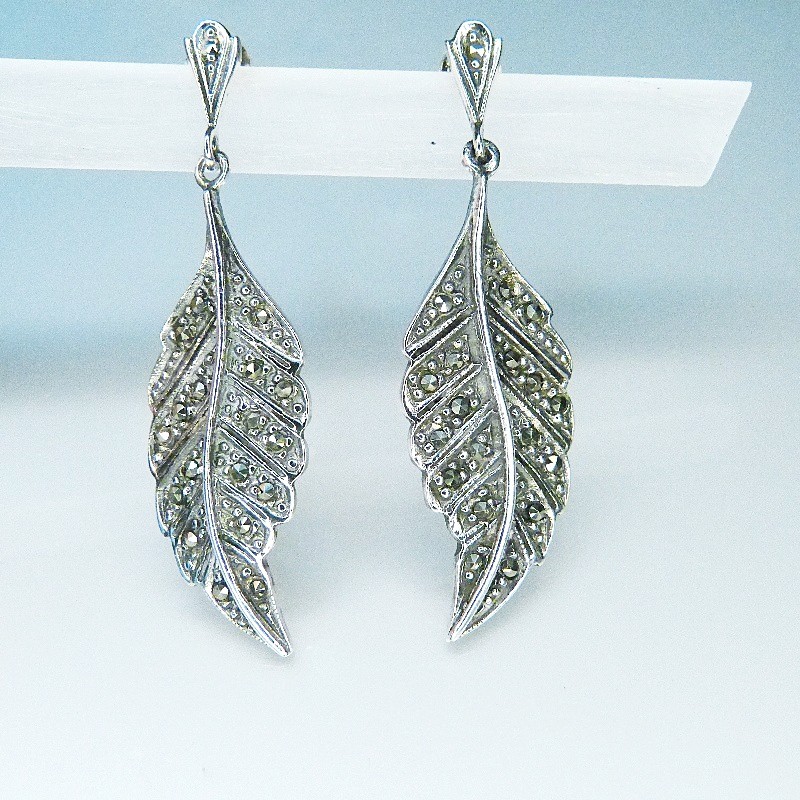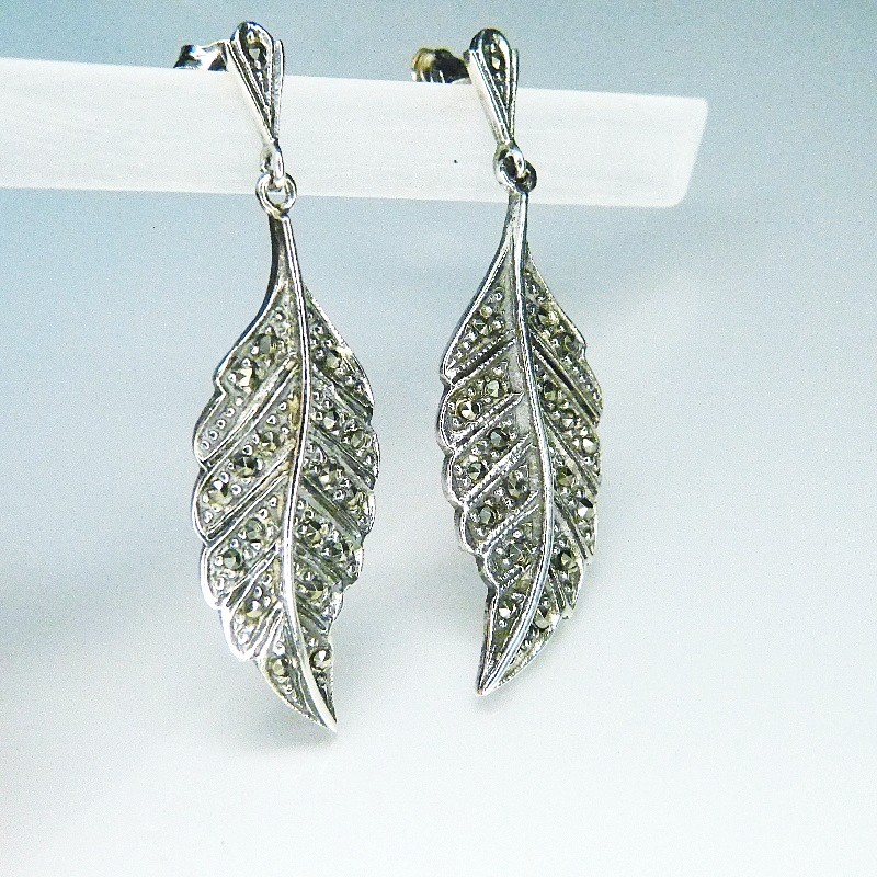 Ohrhänger mit Steckermechanik in Silber 925/- und kleinen facettierten Markasitsteinchen.