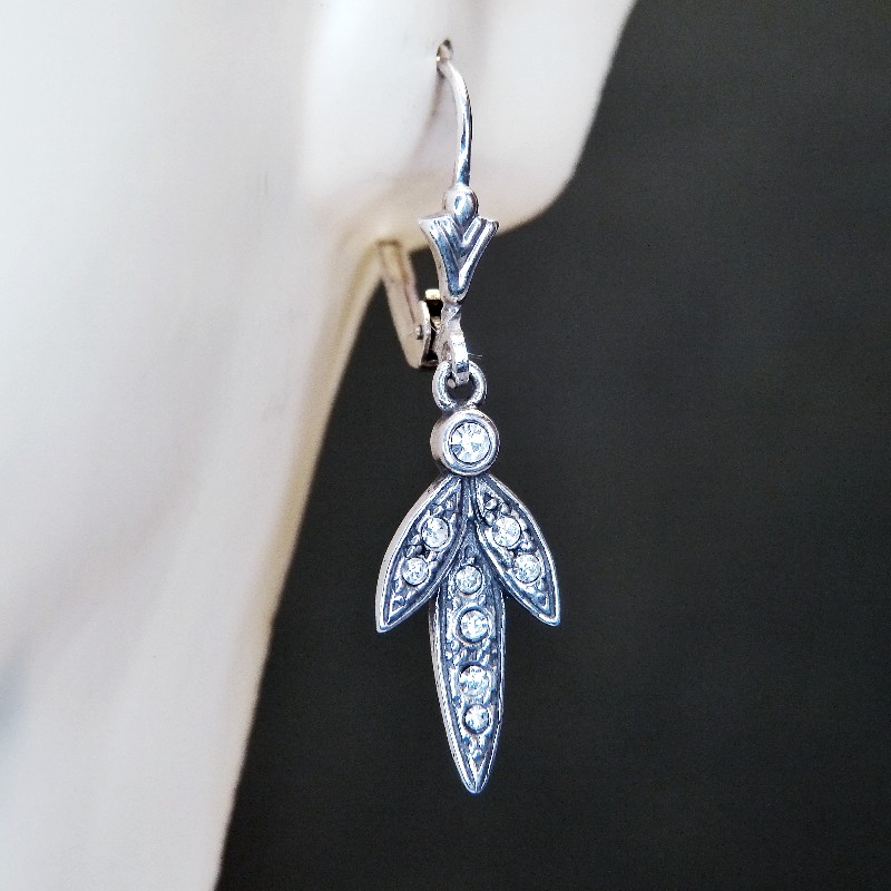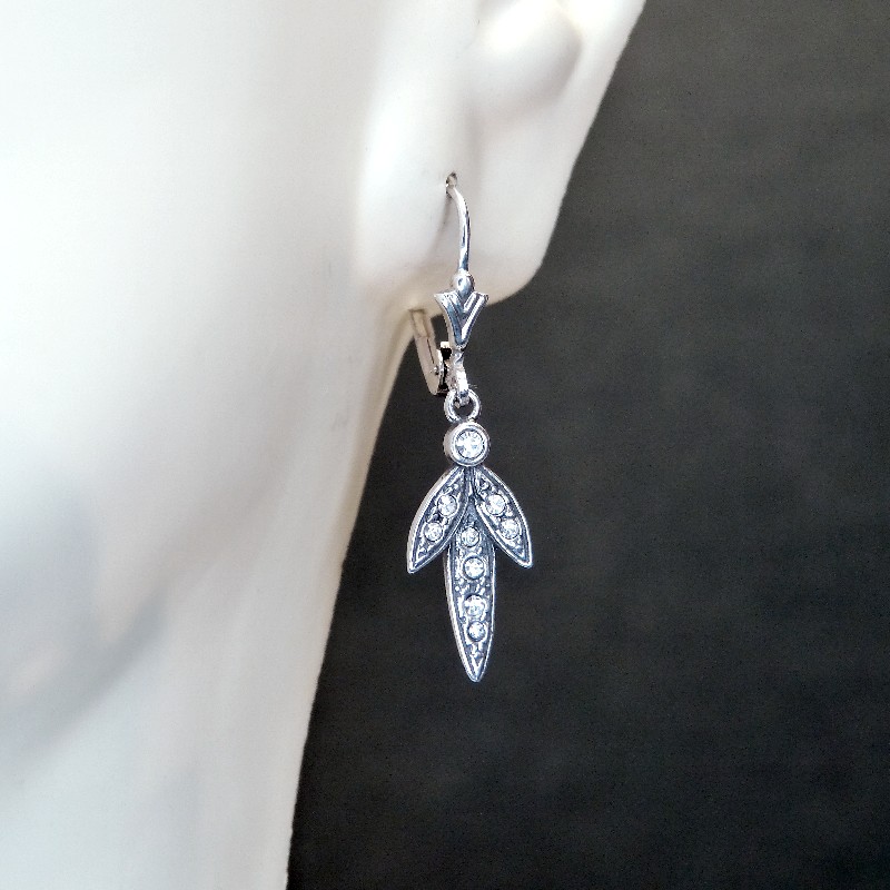 Hängeohrringe aus Silber im Art Deco Stil, kombiniert mit kleinen weißen Zirkonia.