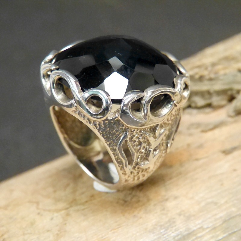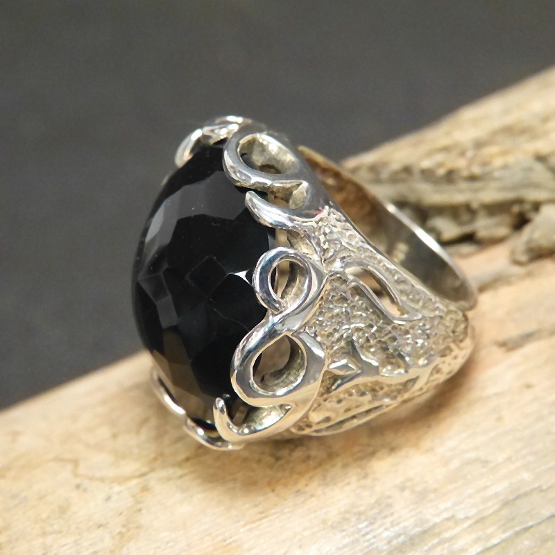 Großer auffälliger Silberring 925/- mit eingefasstem schwarzen Onix mit einer Größe von ca. 25 x 25mm.