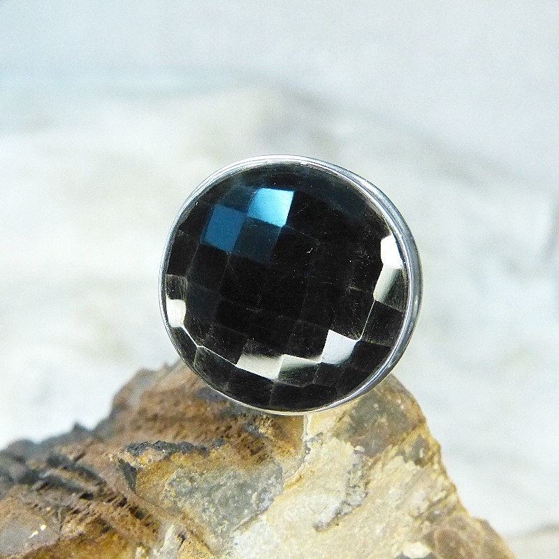 Auffälliger Ring aus 925/-er Silber mit schwarzem, facettiertem Onix.