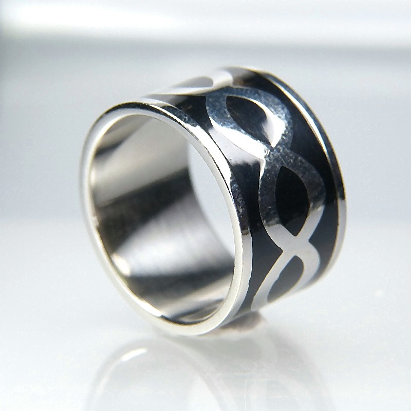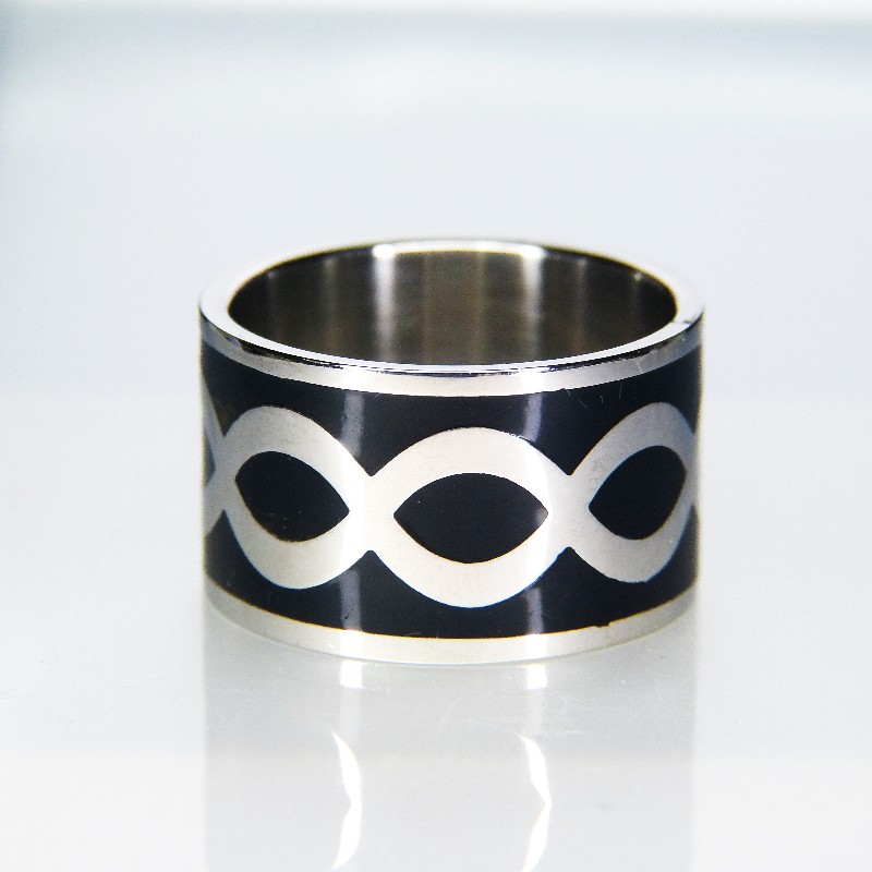 Edelstahlring mit Kaltemaille, ca. 14mm breit