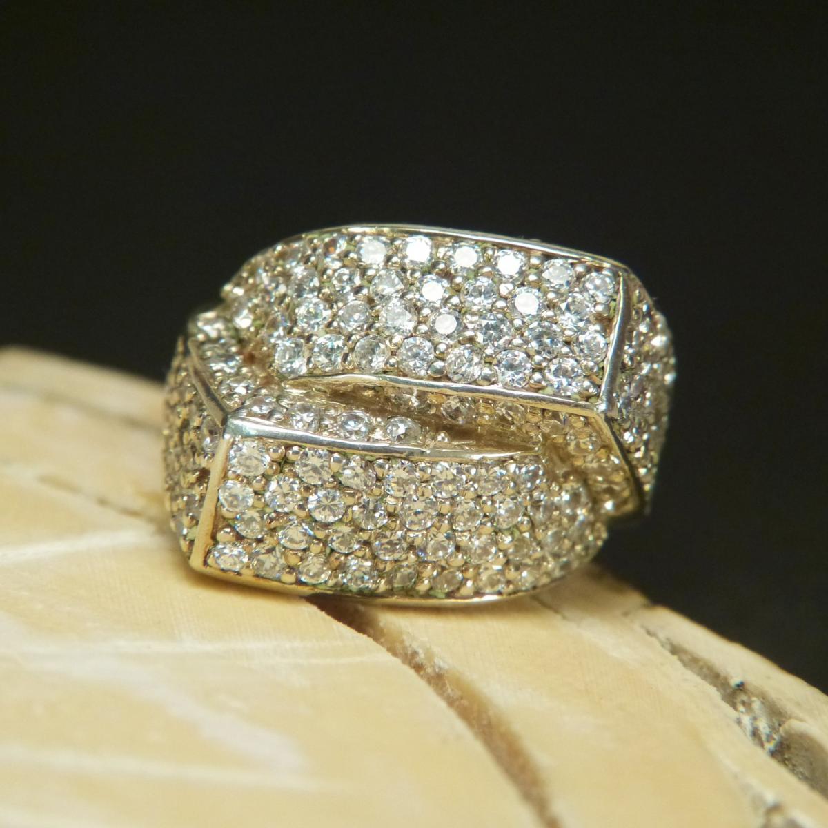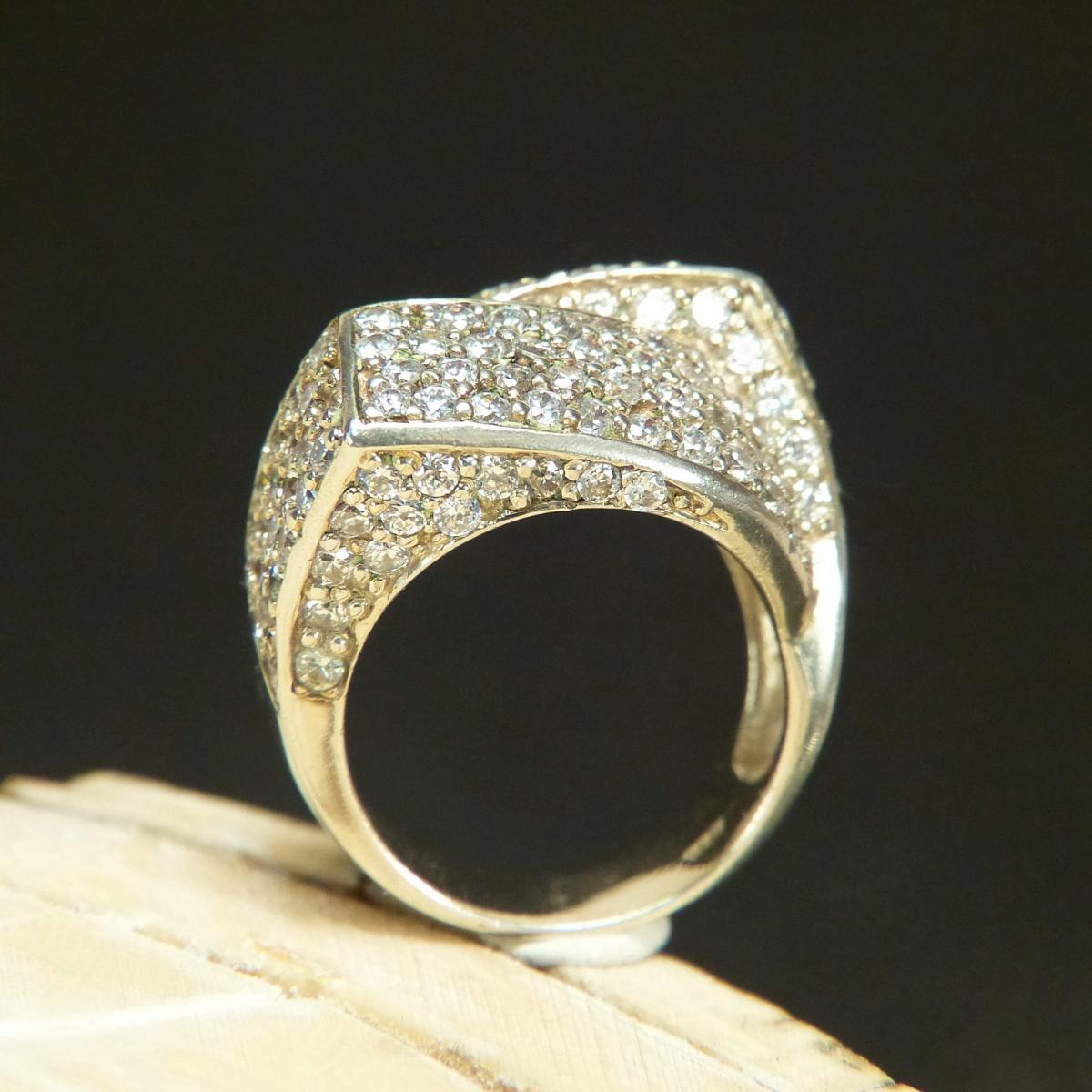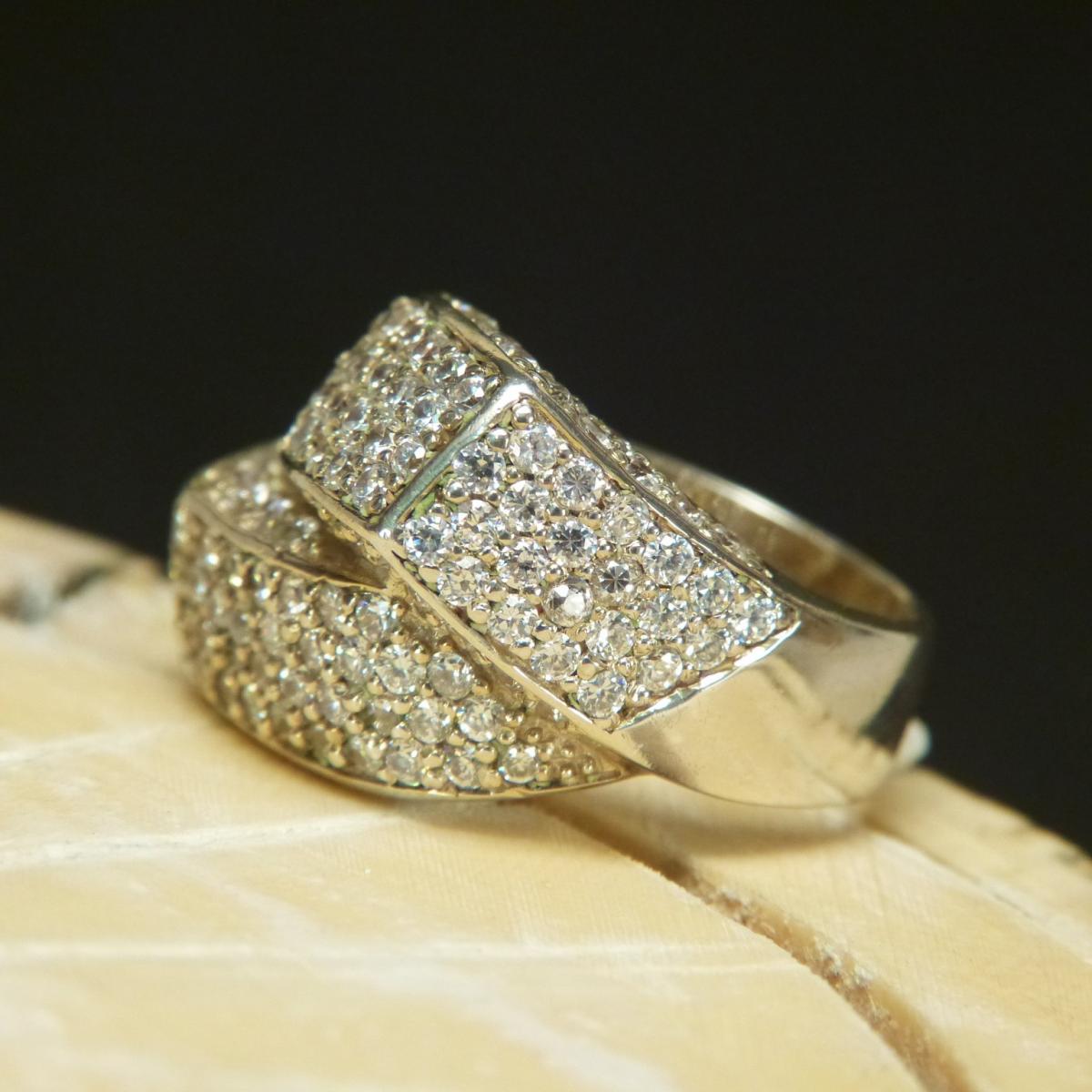 Einzeln eingefasste und üppig platzierte weiße Zirkonia verleihen diesem Ring aus 925/-er Silber sein edles Aussehen.