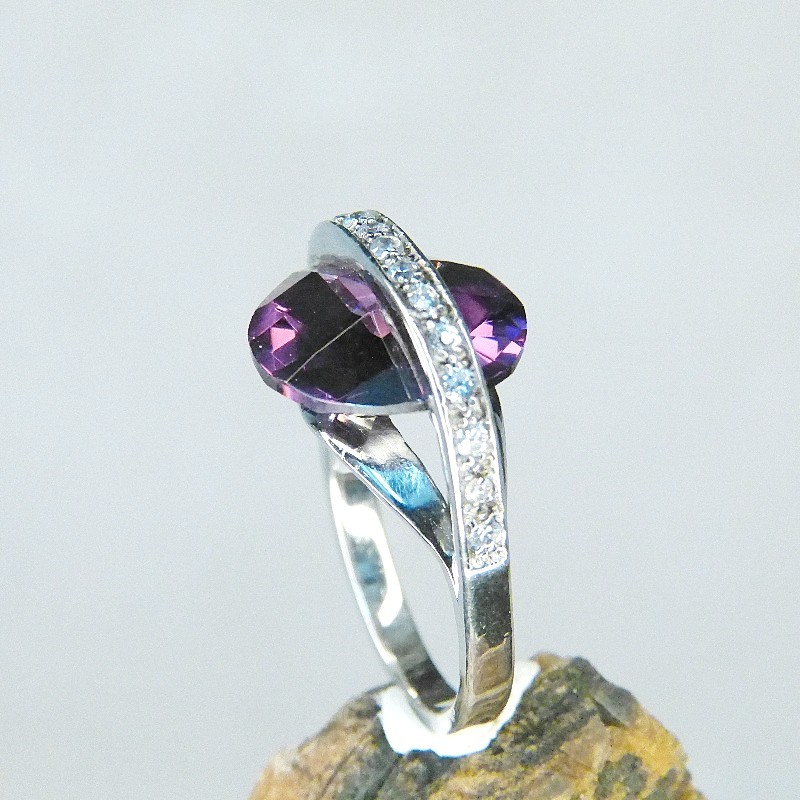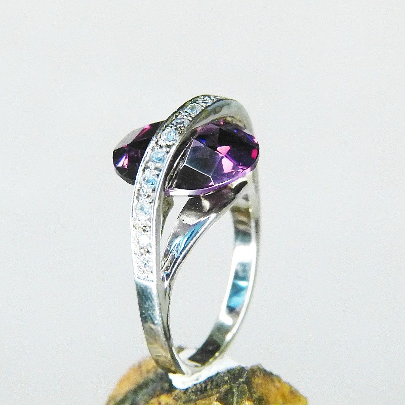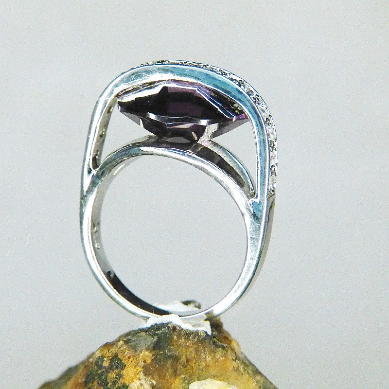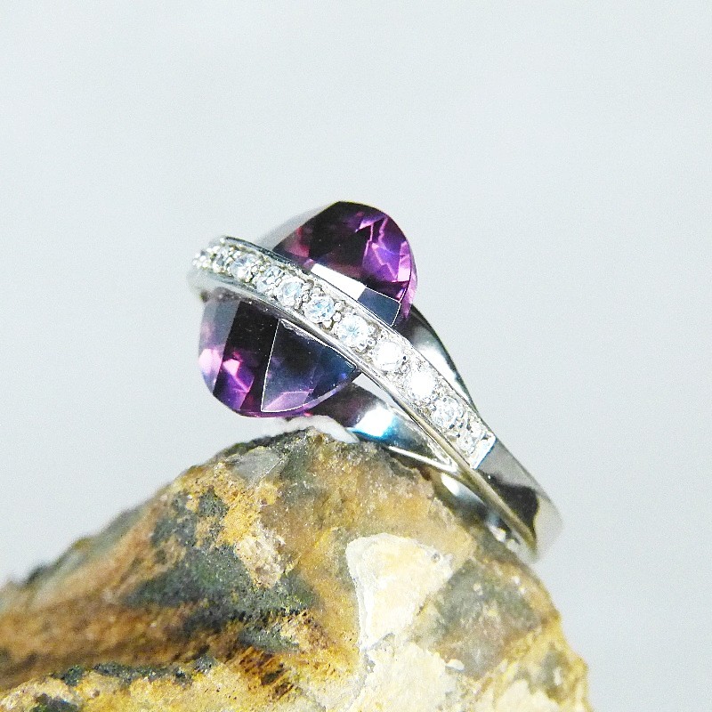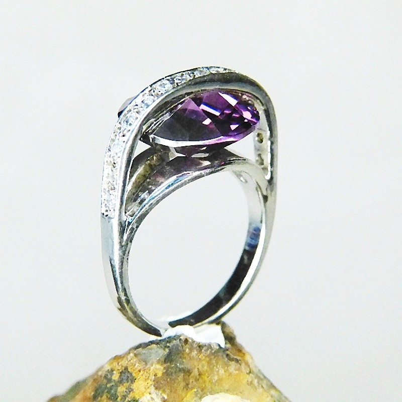 Ein Amethystfarbener Zirkonia wurde auffällig zwischen den Schienen eingearbeitet und erhebt sich ca. 11mm.